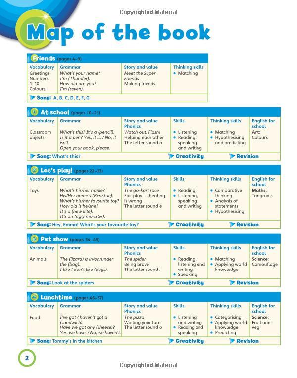 Provides more practice to consolidate the Student Book Picture Dictionary (Levels 1-4) helps with vocabulary practice Grammar Reference Guide (Levels 5-6) offers more practice, and allows students and teachers to check grammar rules
