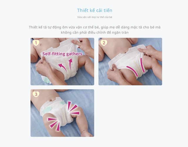 - Công nghệ Origami với 2 đường thun đáy êm mềm, ngăn hằn, cùng thiết kế đai chun co giãn linh hoạt, ôm vừa vặn phần lưng, chân và đùi, không tạo khe hở, chống tràn tối đa (Áp dụng với size 3S, NB và S).