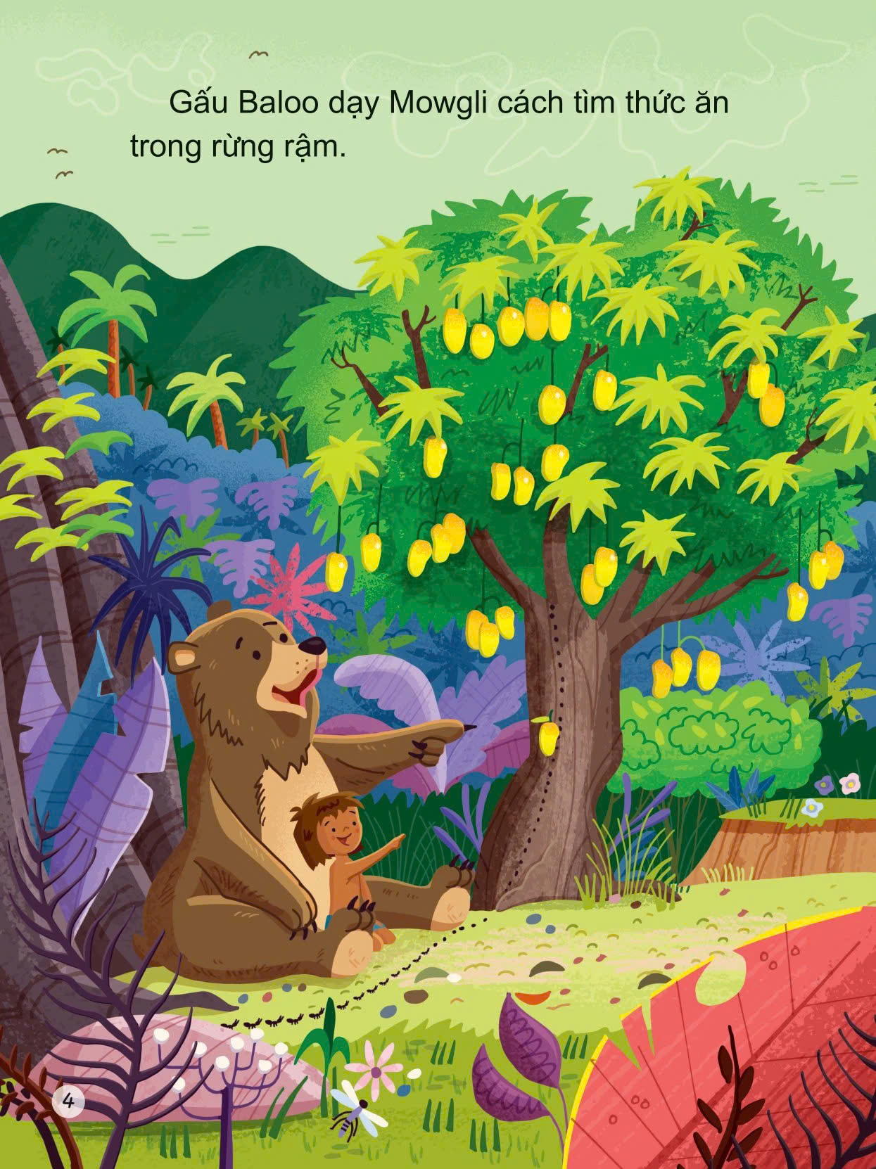Gấu Baloo dạy Mowgli cách tìm thức ăn trong rừng rậm.