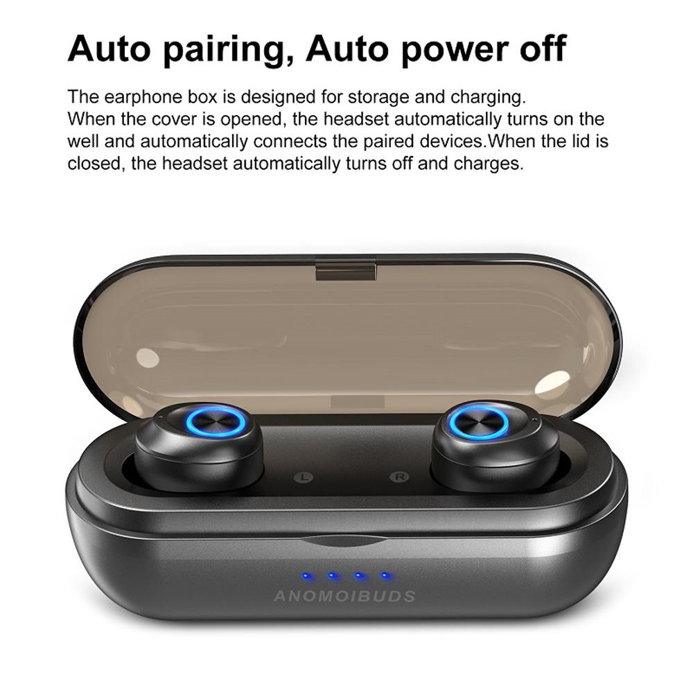 Description: ANOMOIBUDS IP010-X True Wireless Bluetooth Headphones adopts BT 5.0 technology, bringing high-speed data transfer speed, stable performance and low power consumption. With TWS technology, left and right ear channel are separated. You can use the headset solely, or used them in pairs. Auto fast pairing between left and right earbuds once opening the cover of the charging case. Easy and quick to pair with BT-enabled audio devices. Equipped with a 1000mAh charging box to charge the earbuds for 9-10 times, provides total 50 hours of working time. Built-in dual Microphone delivers clearer and more real talking sound. Its mini size and 4.3g weight of each earphone fit well to your ear canal, stable and comfortable to wear when doing sports. ANOMOIBUDS IP010-X will brings you perfect user experience. Features: TWS BT5.0 Headphone: Wireless dual ear design, left and right ear channel are separated. You can use the headset solely, or used them in pairs. BT 5.0 brings high data transfer speed, stable connection and low power consumption. Fast Easy Paring: Auto power on and fast pairing between left and right earbuds once opening the cover of the charging case. Easy and quick to pair with BT-enabled audio devices. Effective distance is about 10 meters in open space. Long Battery Life: 50mAh battery in each headphone ensures 4-5 hours of working time. 1000mAh charging box enables dual headsets charging for 9-10 times, extending the playback time up to 50 hours in total. Born for Sports: 4.3g lightweight and mini size fit well to your ear canal and provide you long time wearing comfort. It guarantees stability when doing sports. With charging box, easy to store and carry anywhere. Hands-free with Dual Mic: BT5.0 chip offers noise reduction function which grasps the detail of voice greatly. Built-in Mic on both earbuds delivers clearer and more real talking sound in stereo mode. Simple Operation: One button control music and calls. Easy to turn on / off, play / pause / switch music, hands free calling when driving, working, meeting, running, etc. Note: Please use the 5V 1A adapter to charge, otherwise it may damage the earphones. Specifications: Brand Name: ANOMOIBUDS Model Number: IP010-X BT Version: BT 5.0 BT Protocol: HSP, A2DP, AVCRP Frequency Range: 20-22000Hz Sensitivity: 90dB Impedance: 16Ω Transmitting Distance: 10m/33ft Charging Box Capacity: 3.7V 1000mAh Earphone Battery Capacity: 2 3.7V 50mAh Music Play Time: about 4-5 hours (depends on music volume) Charging Time for Headphone: about 1 hour Charging Time for Charging Box: about 2 hours Standby Time: 240 hours Material: ABS Color: Black Earphone Size: 211714mm/0.820.670.55in Earphone Weight: 8.6g/0.30oz (Pair of Earbuds) Charging Box Size: 8.83.63.3cm/3.461.411.29in Charging Box Weight: 42.8g/1.50oz Package Size: 11.111.14.0cm/4.374.371.57in Package Weight: 140.2g/4.94oz Package List: 1 Pair of Headphones 1 Charging Box 1 Charging Cable 2 Pairs of Silicone Ear Tips 1 Pair of Memory Foam Ear Tips 1 * User Manual (English / Chinese)