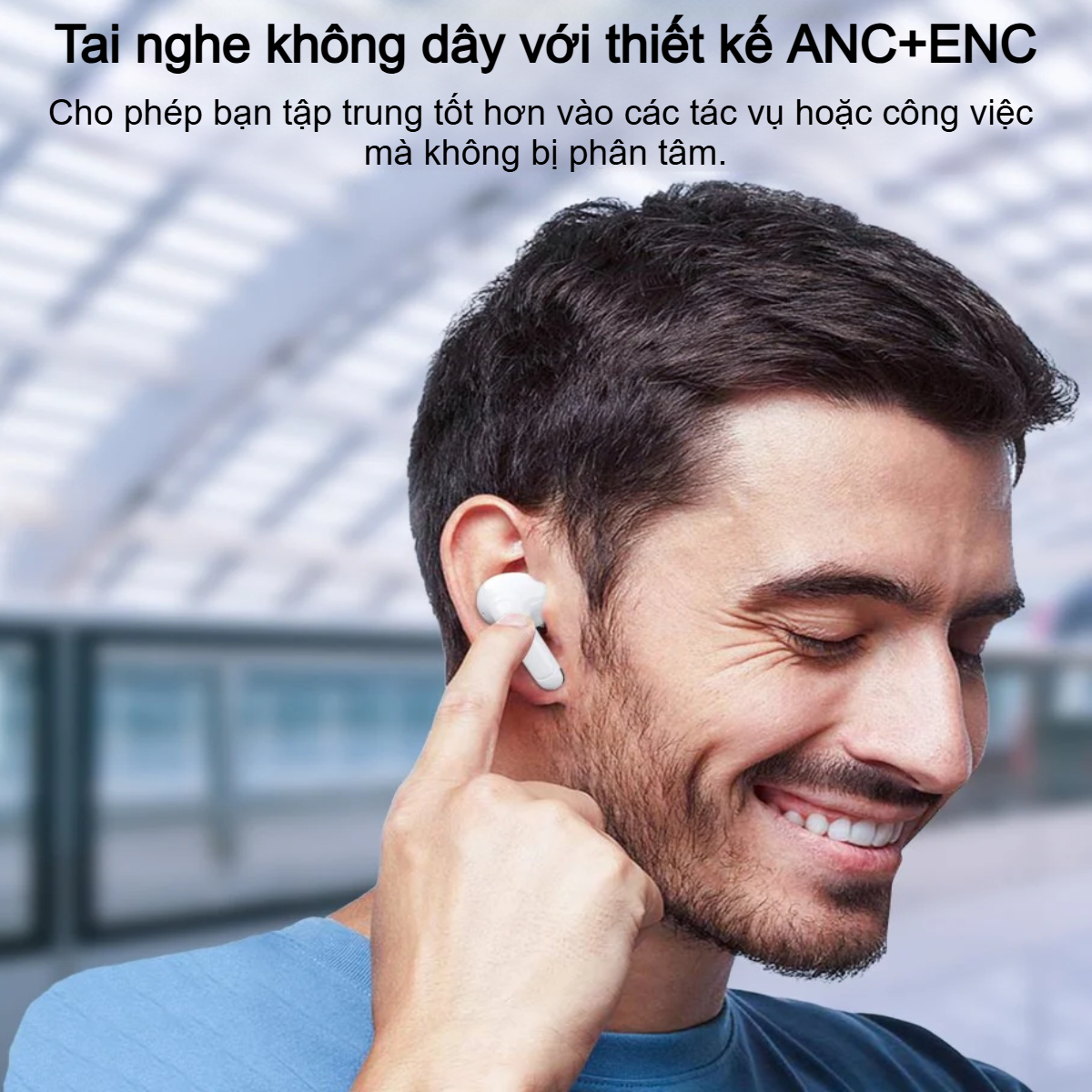 - Tính năng: ANC (Active Noise Cancellation) loại bỏ tiếng ồn môi trường xung quanh khi nghe nhạc và ENC (Environmental Noise Cancellation) khử nhiễu cho đàm thoại. Có màn hình LED hiển thị dung lượng pin