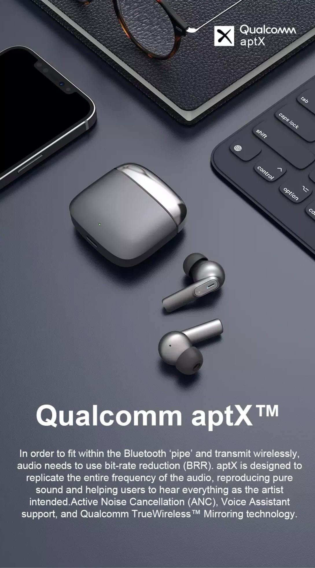- Khử tiếng ồn hoạt động (ANC) , hỗ trợ giọng nói và công nghệ phản chiếu TM TrueWireless của Qualcomm