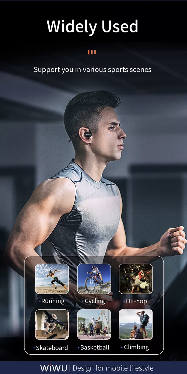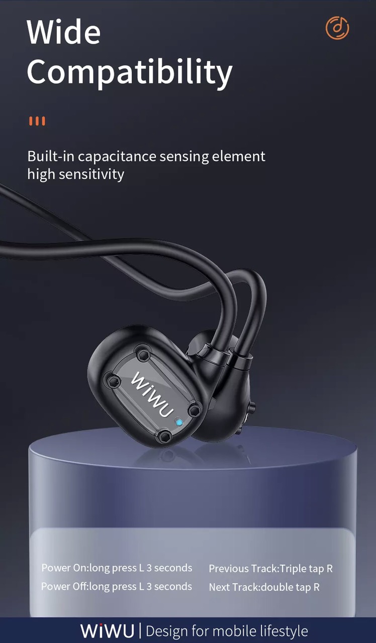 Tai nghe không dây thể thao Wiwu SE Thương hiệu: Mô tả sản phẩm Dung lượng pin: 100mAh Thời gian làm việc : khoảng 6 giờ , tiêu thụ điện năng thấp Tai nghe chỉ