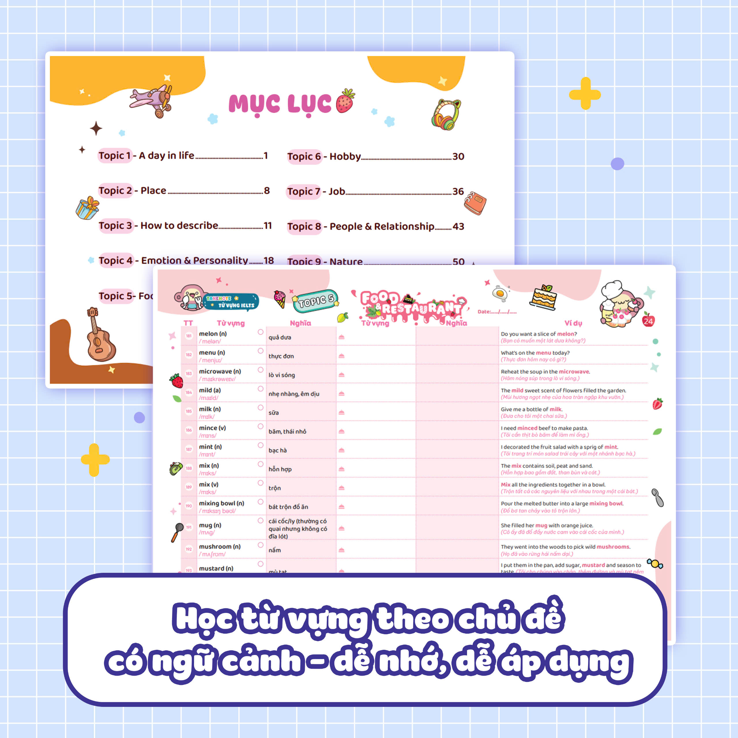 Chia theo 9 chủ đề thực tế, gần gũi: Các chủ đề như “A day in life”, “Emotion & Personality”, “Job”, “Food & Restaurant”… đều quen thuộc, giúp người học dễ hình dung và vận dụng từ vựng vào cuộc sống hàng ngày.