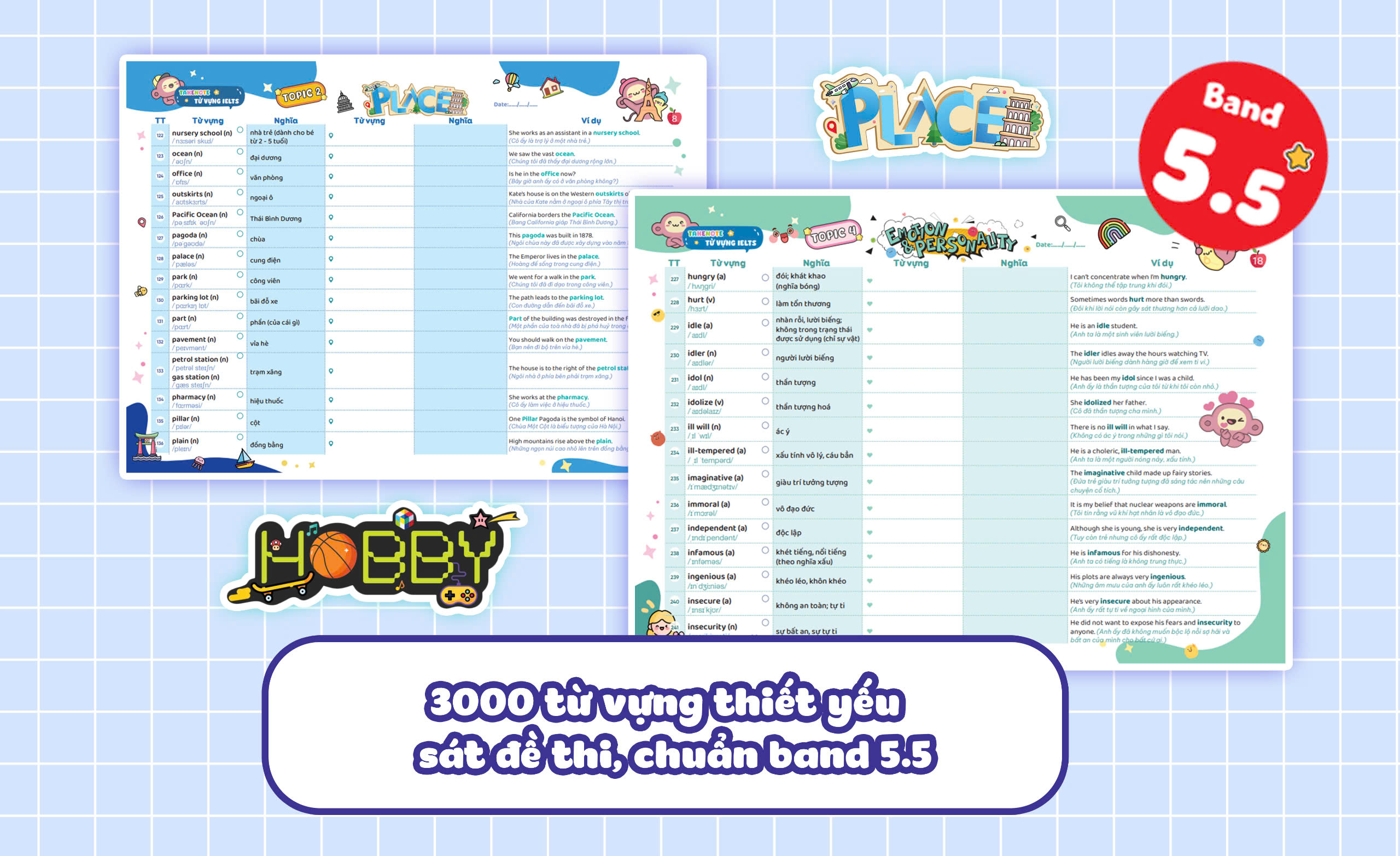 Kho từ vựng 3000 từ chuẩn band 5.5: Từ vựng được chọn lọc kỹ càng, phù hợp với người mới học hoặc đang ở trình độ dưới 5.0. Đây là vốn từ nền tảng giúp bạn dễ dàng nâng cấp khả năng tiếng Anh học thuật và giao tiếp.