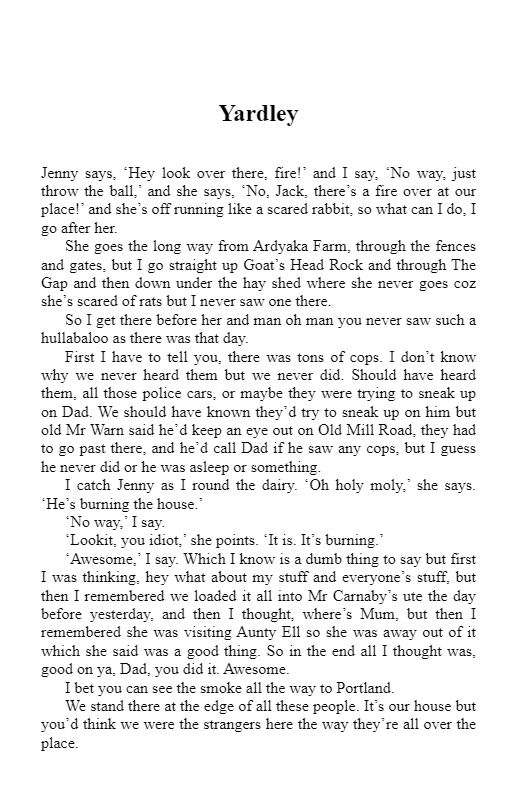 But on the night of their departure, someone burns down the local bank. And as the motley funeral procession passes through Victoria, there are more mysterious arson attacks. Dawn has five days to get to Melbourne. Five days, five more towns, and a state ready to explode in flames