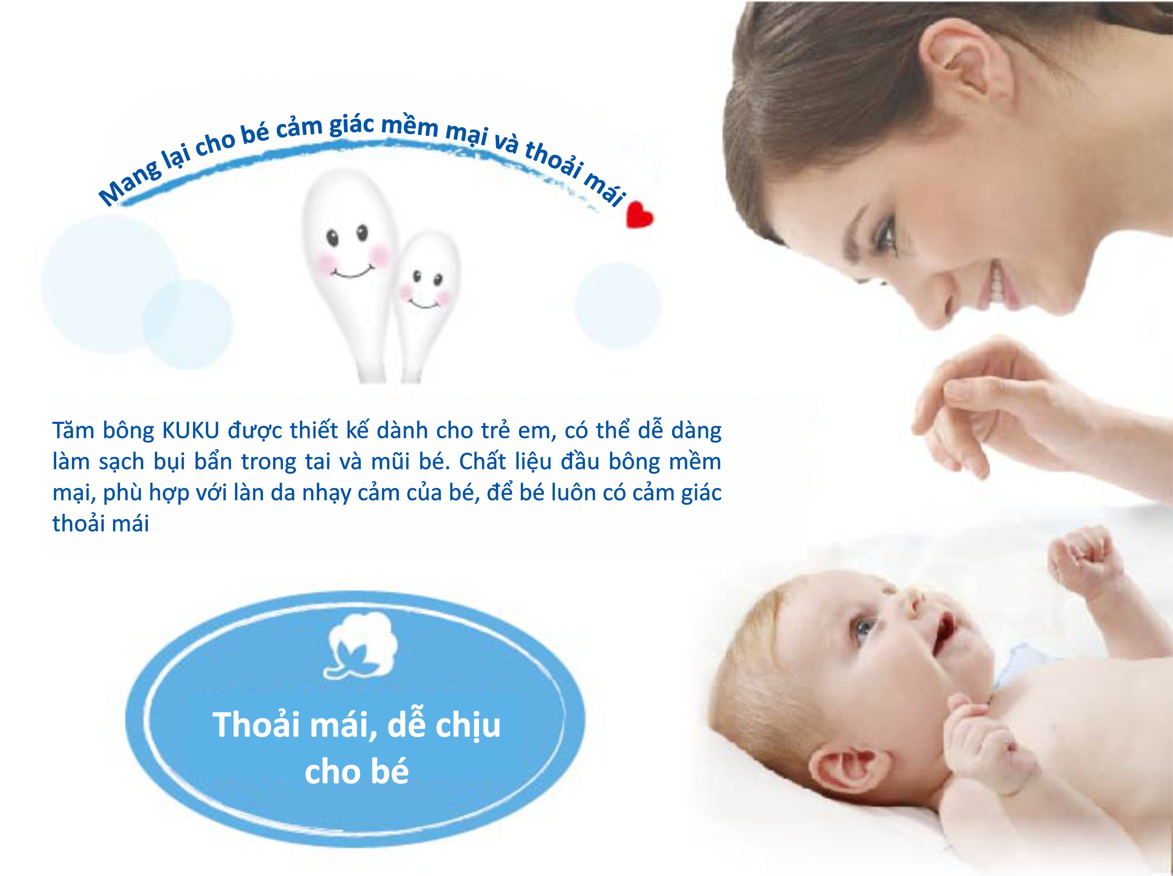 - Đầu bông thiết kế hình hồ lô làm sạch sâu và rộng hơn, tạo cảm giác dễ chịu cho bé.