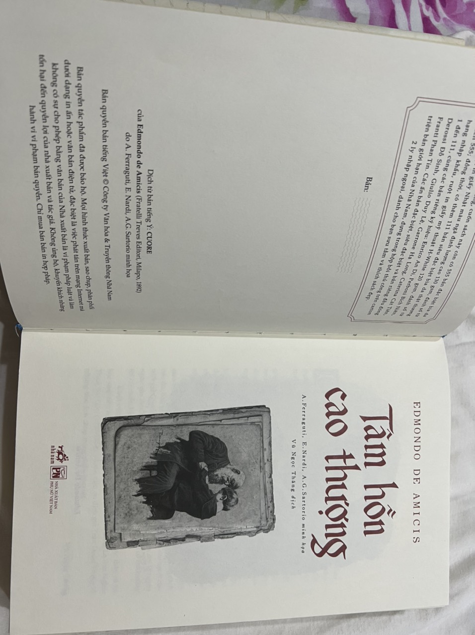 EDMONDO DE AMICIS (1846-1908) là một nhà văn, nhà báo và nhà thơ người Ý. Ông được biết đến với tác phẩm dành cho thiếu nhi nổi tiếng toàn thế giới Tâm hồn cao thượng.