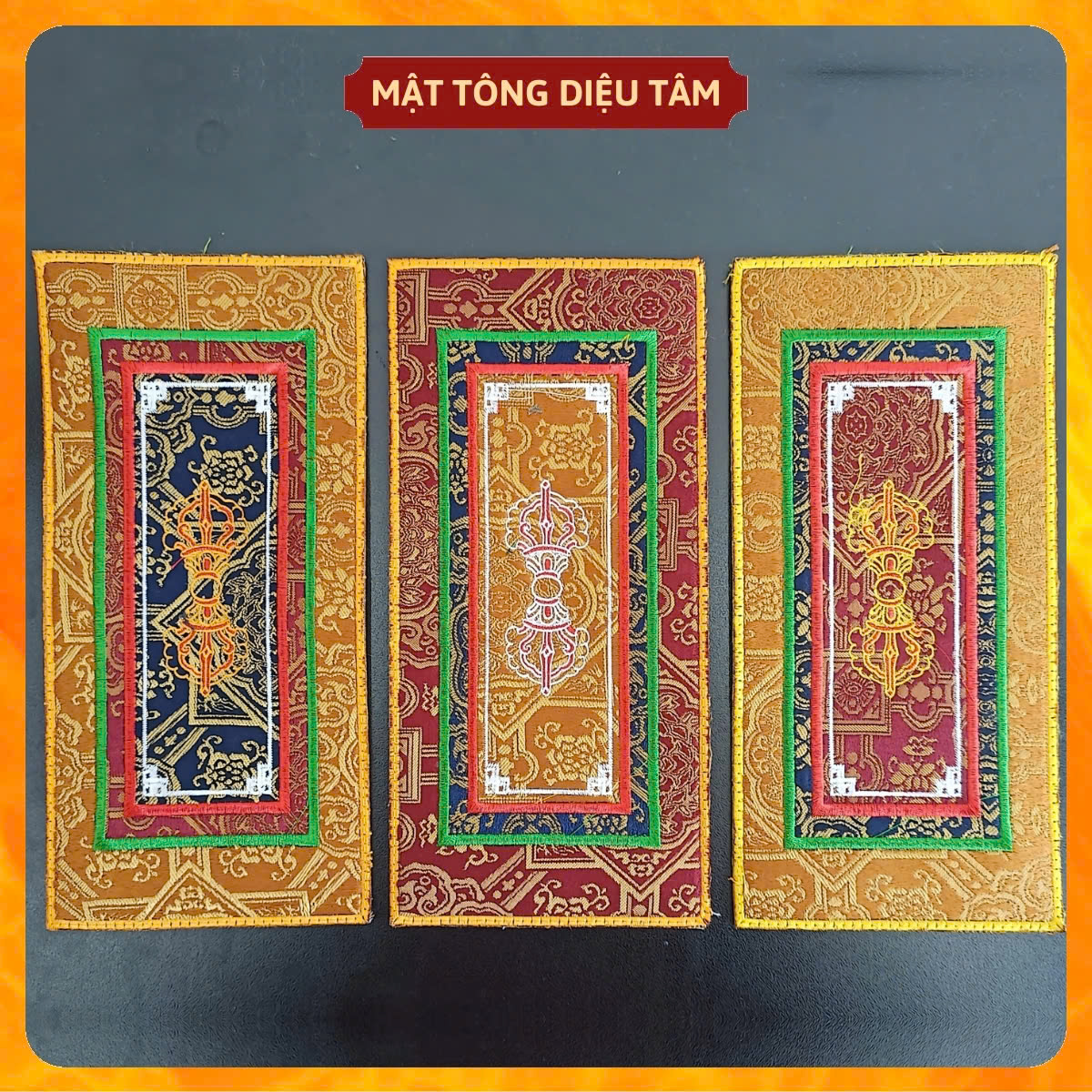 ✨Tấm lót tượng, pháp khí Khăn kê chuông chày kim cang chữ nhật biểu tượng pháp luân và chùy kim cang Mật Tông Diệu Tâm