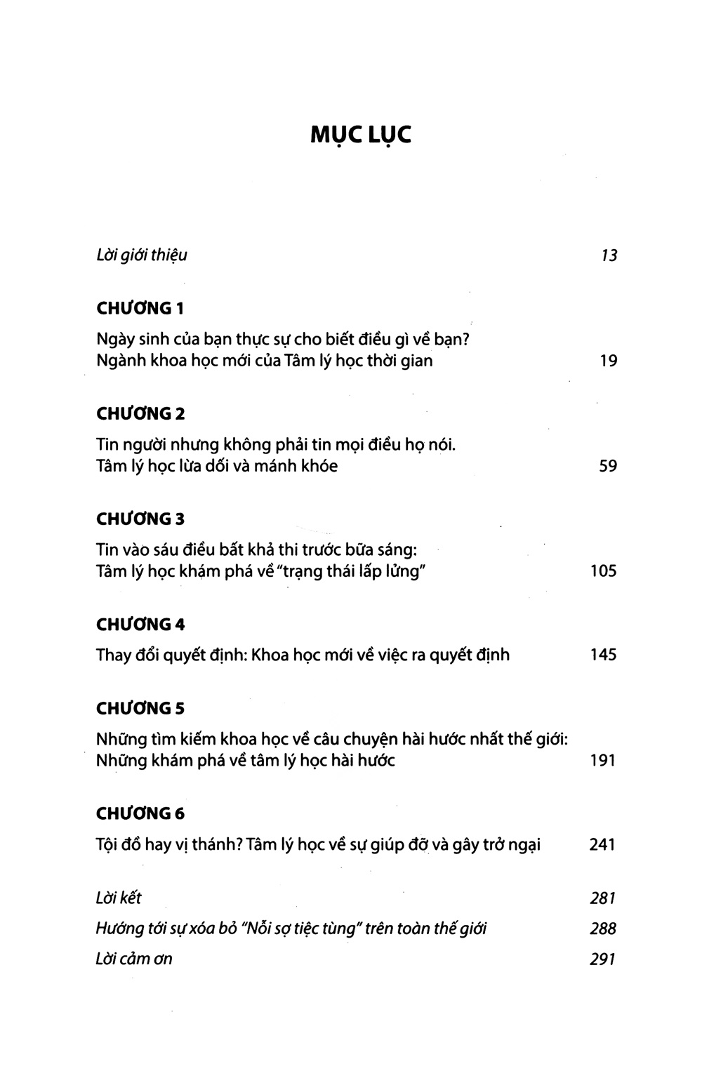 Cuốn sách hàm chứa những nghiên cứu, thí nghiệm độc đáo, dị thường của những nhà khoa học tò mò nhất trên thế giới. Trong đó có rất nhiều điều chúng ta cũng thường xuyên tự hỏi mỗi ngày. Mỗi chương sách hé lộ một mảng tâm lí học bí mật nằm dưới những khía cạnh khác nhau trong cuộc sống của chúng ta, từ sự lừa dối cho đến việc ra quyết định, từ tính ích kỉ cho đến sự mê tín. Trong quá trình này, chúng ta sẽ bắt gặp một vài mảnh ghép ưa thích về sự kì lạ nhưng hấp dẫn.