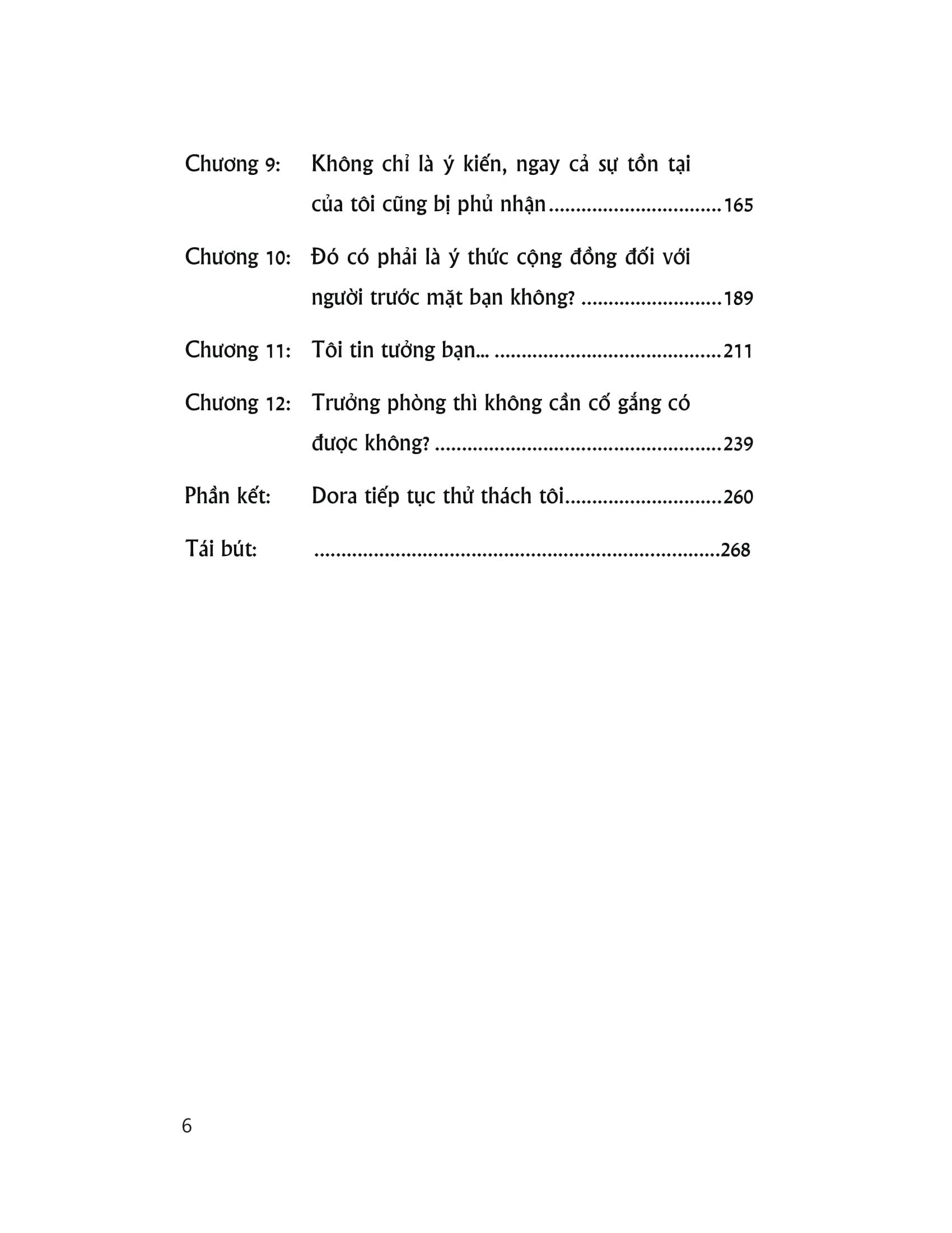 Ở đây, có thể tóm lược đó là suy nghĩ và hành động “muốn cống hiến cho những người xung quanh” hay nói cách khác là “ý thức cộng đồng”. Qua đó thấy được “sự can đảm” và “ý thức cộng đồng” là hai từ khóa tồn tại độc lập, song song với nhau, đồng thời chúng cũng có quan hệ phụ thuộc lẫn nhau. Ở phần sau của cuốn sách, nhân vật chính, Ryo đã nhận ra điều này. Sự trưởng thành của con người bắt đầu từ “lòng can đảm”. Nhân vật Ryo đã can đảm để thay đổi và tạo được những bước ngoặt trong cả công việc và đời sống cá nhân? Vậy còn bạn thì sao? Liệu bạn có làm được điều tương tự?