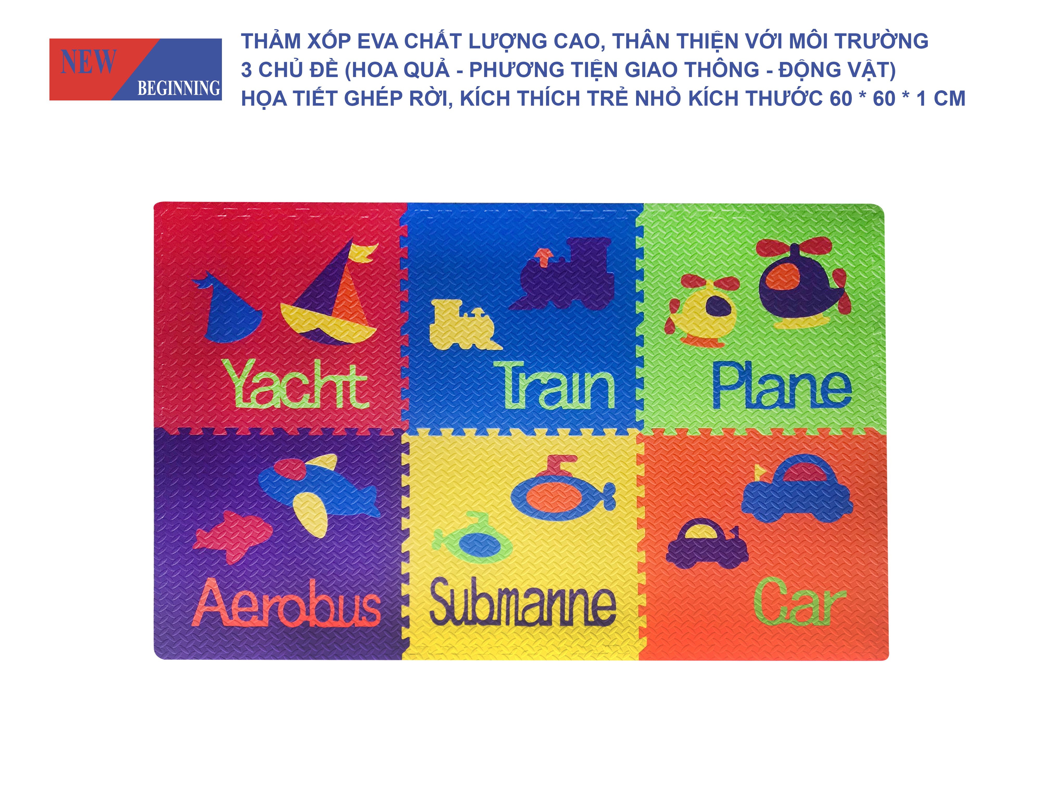 Đặc trưng: Đồ chơi và trò chơi. Mặt hàng này có nhiều màu sắc hấp dẫn khác nhau với các tấm thảm có thể lồng vào nhau. Thảm xốp xếp hình mini này có thể