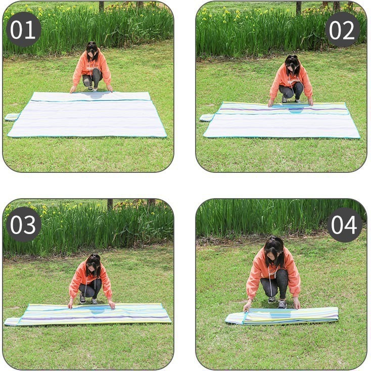 - Thảm trải đi phượt, dã ngoại gấp gọn được dệt từ sợi polyester với đặc tính dẻo dai bền sợi, trọng lượng nhẹ, bền màu và dễ dàng vệ sinh bảo quản.