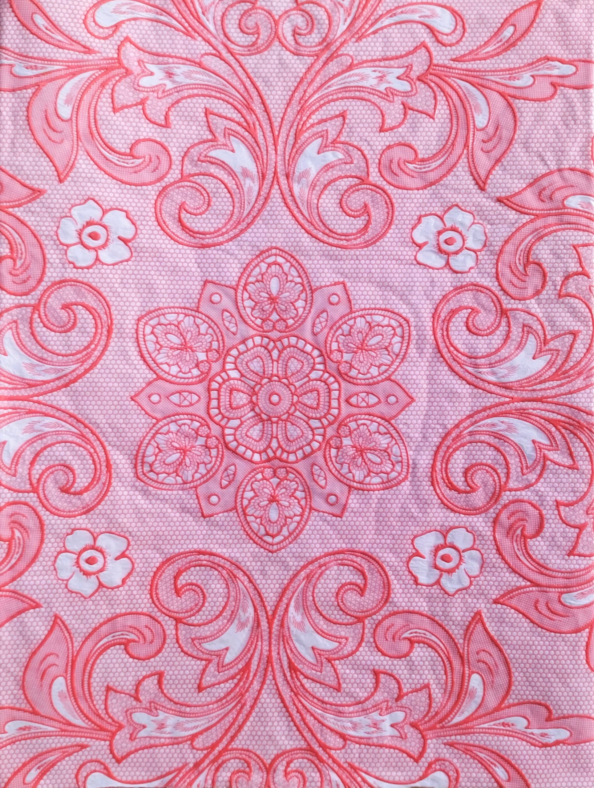 ✨(Tặng 1 lót phần ăn 30x45 cm) Khăn Trải Bàn PAULEE 856B tròn 150cm Hoa văn hồng, không thấm nước