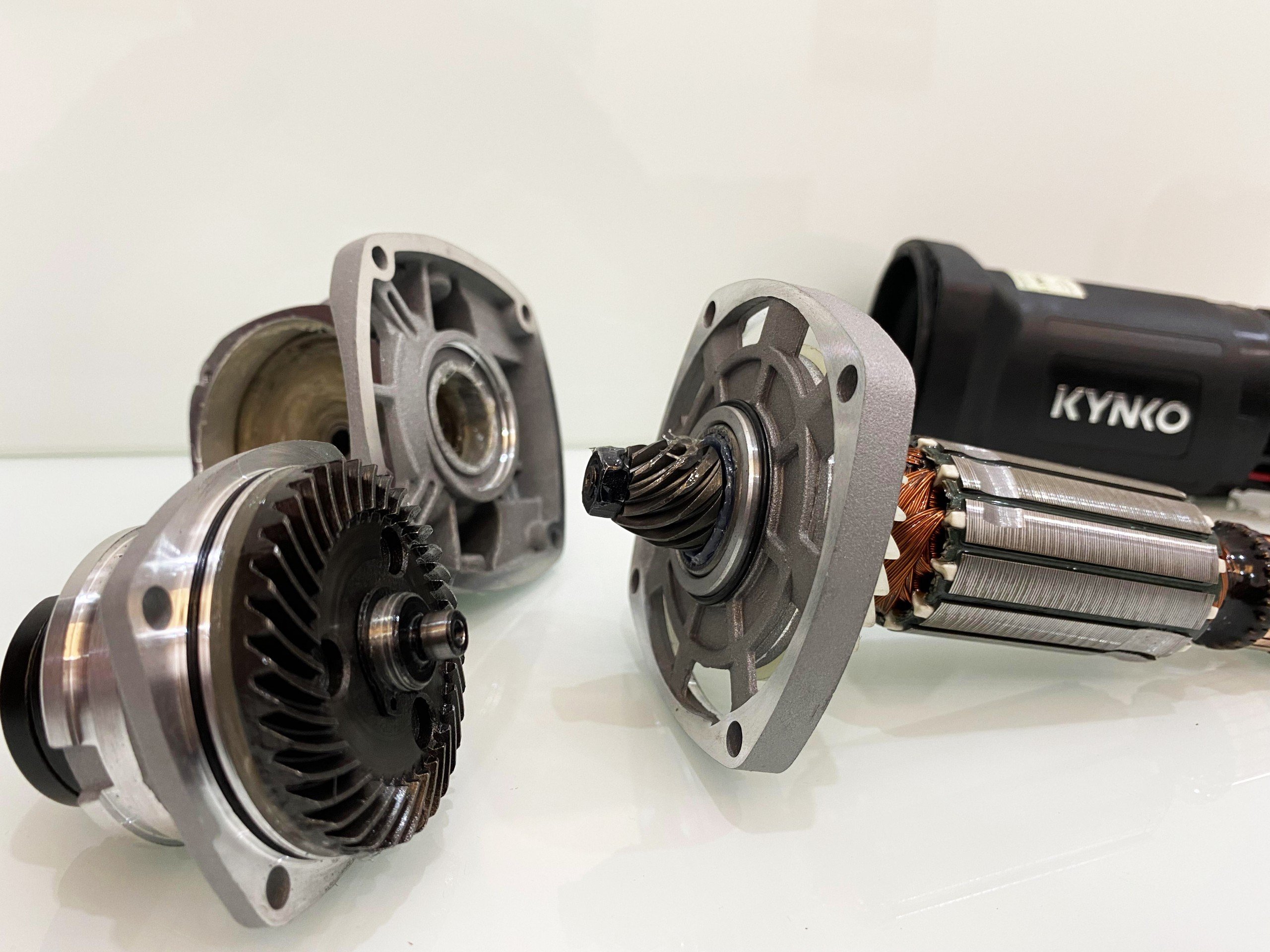 Máy mài góc Kynko KD57 được hoàn thiện từ những linh kiện nhập khẩu cao cấp nhất: vòng bi NSK (Japan), mỡ chịu nhiệt Shell (USD), nhựa vỏ máy BASF (Germany), chổi than TOYO (Japan), dây dẫn chịu nhiệt 240°C, dây đồng chịu nhiệt đến 240°C