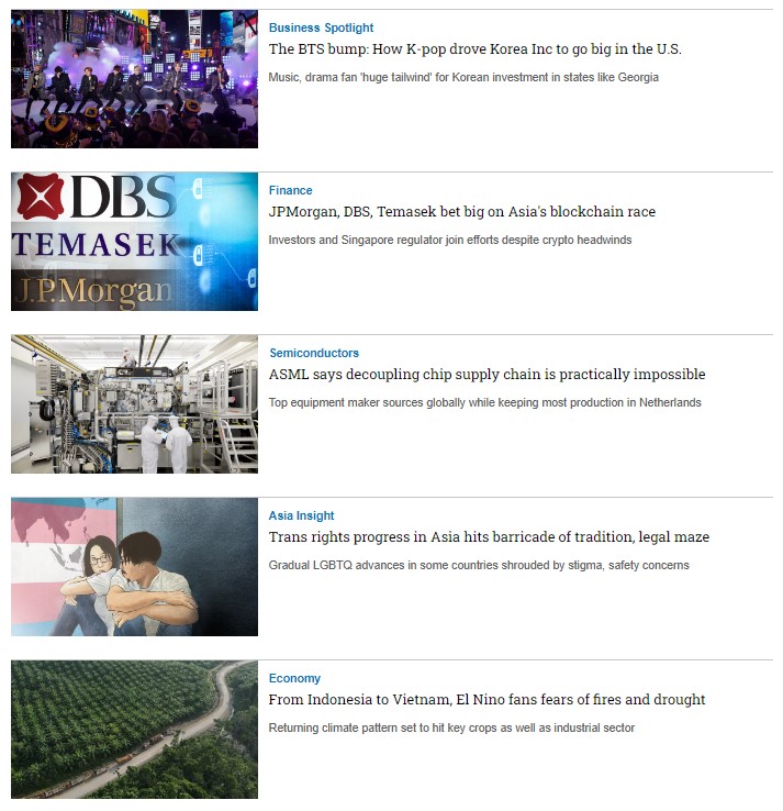 Nikkei Asia là tạp chí bằng tiếng Anh rất uy tín của Nikkei - Nhật Bản, chuyên viết về Xu hướng khu vực châu Á - Thái Bình Dương, Kinh tế, Công nghệ, Chính trị,