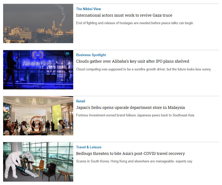 Mỗi tuần, Nikkei Asia xuất bản hơn 16,000 ấn phẩm đến tay độc giả của 30 quốc gia. Nikkei là thương hiệu báo tài chính uy tín và lớn nhất thế giới, mỗi ngày tại Nhật Bản phát hành 4 triệu bản. Tập đoàn còn sở hữu các đầu báo uy tín khác như Financial Times, Dealstreet Asia,