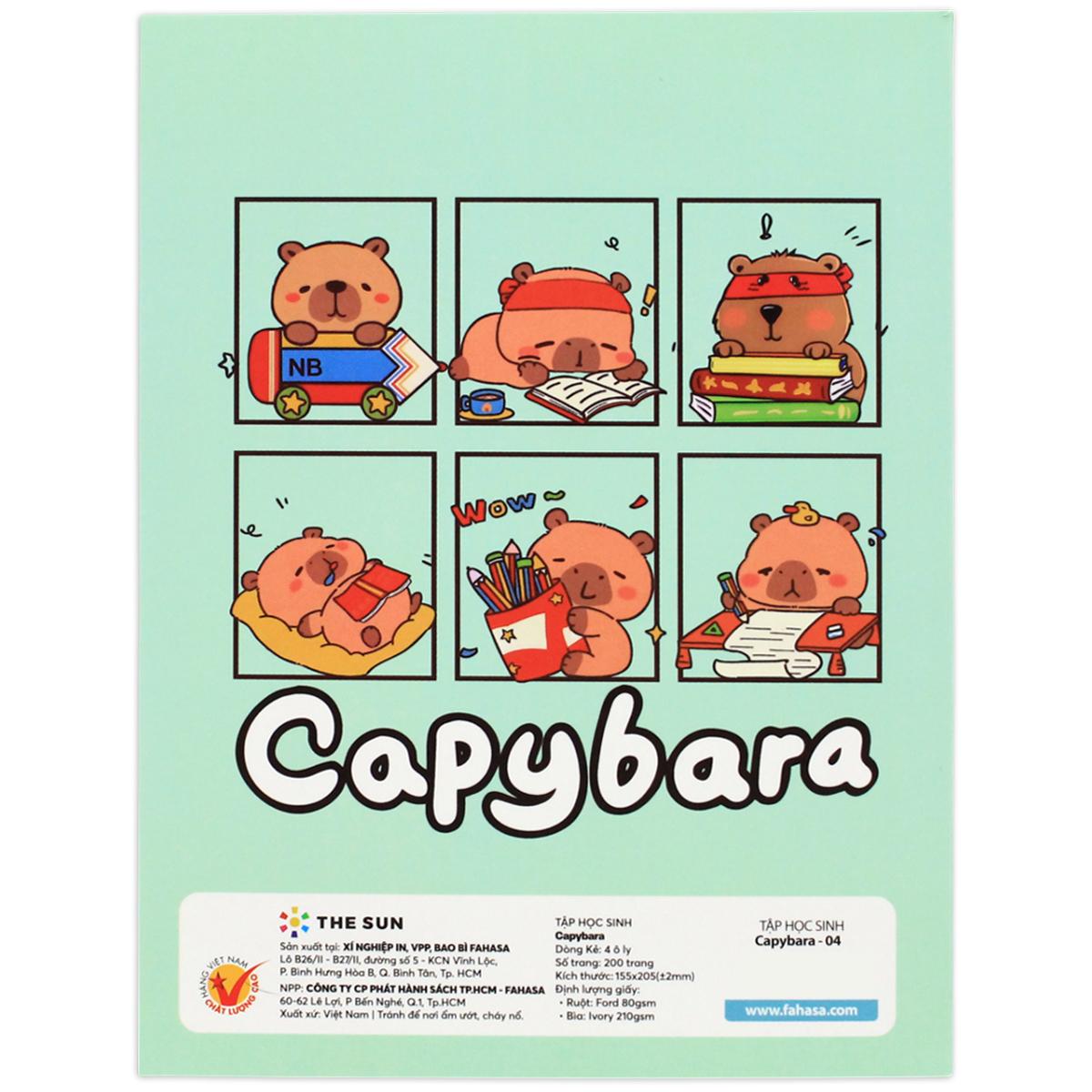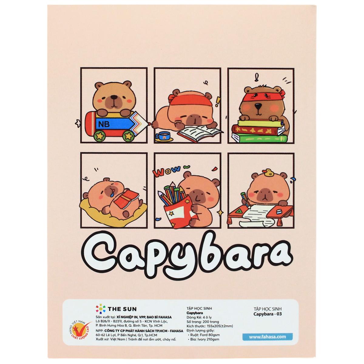 ✨Tập Học Sinh Capybara - 4 Ô Ly - 200 Trang 80gsm - The Sun (Mẫu Bìa Giao Ngẫu Nhiên)