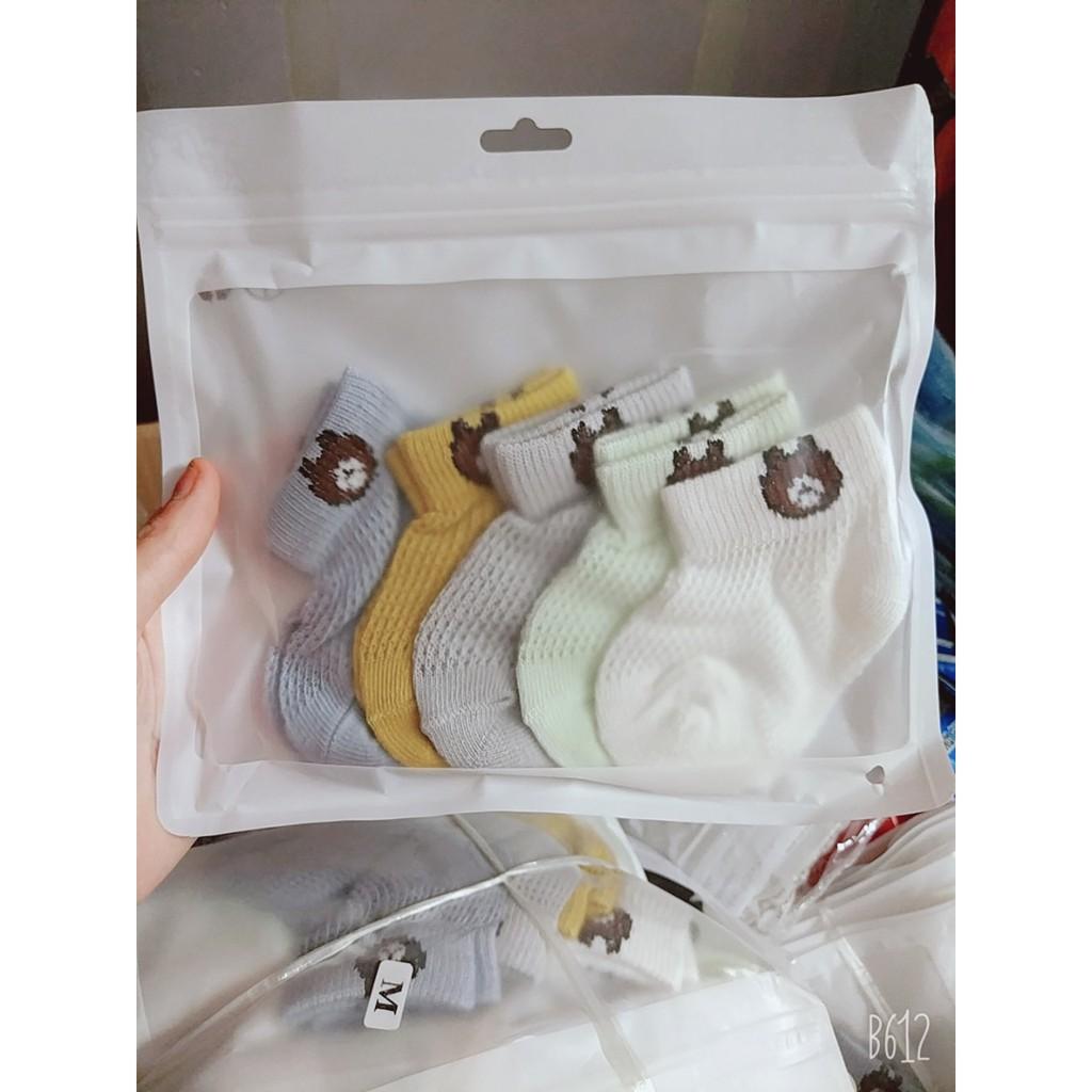 Set 5 đôi Vớ Tất Lưới Hình Gấu cổ ngắn cho bé sơ sinh (0-2 tuổi)