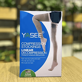 Mua tại TiktokVớ Đùi Không Bàn Chân - Suy Giãn Tĩnh Mạch Yasee - Tất đùi y khoa hỗ trợ, ngăn ngừa giãn tĩnh mạch chân (1 đôi) Đơn vị tính: 1 đôi/hộp Vớ có 4 size.