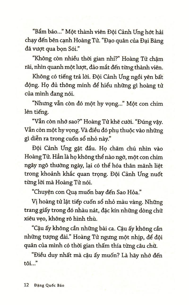 Như cuộc rong chơi, bạn đọc sẽ tìm thấy chính mình trong câu chuyện của một chú quạ, thấy những người quen của mình qua các cư dân của Vương Quốc, rồi sẽ tự khám phá bản thân và chinh phục được thính giả bằng kỹ năng trình bày. Đó là cách mà tác giả Đặng Quốc Bảo - nguyên chủ tịch câu lạc bộ diễn thuyết Sài Gòn - kỳ vọng ở bộ sách này, và đó chính xác là điều anh đem đến cho độc giả. Một bộ sách hướng dẫn kỹ năng cho người trẻ theo phong cách mới mẻ.