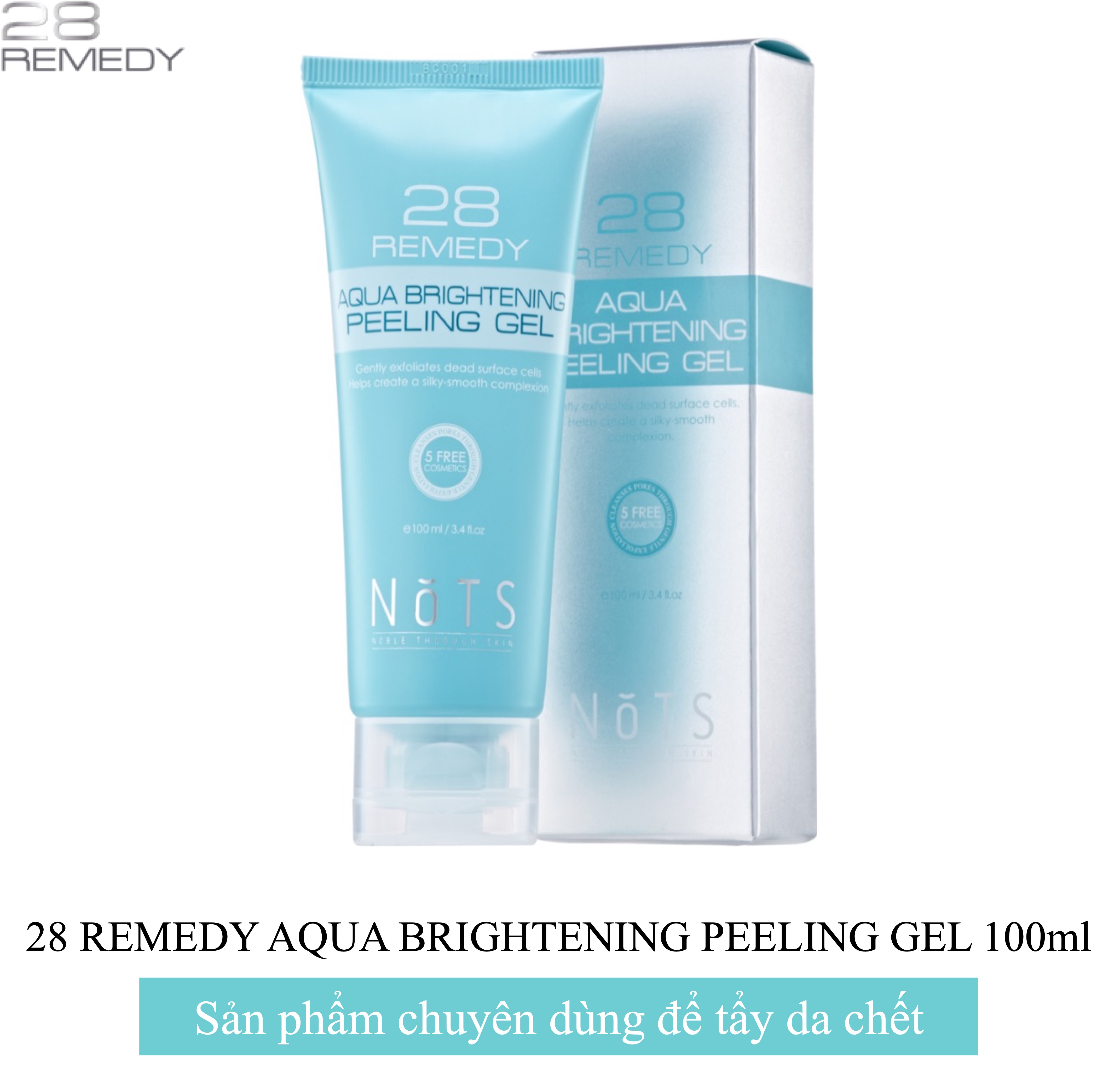 - Gel Tẩy Tế Bào Chết Trắng Da NoTS 28 Remedy Aqua Brightening Peeling Gel 100ml giúp da loại bỏ các bã nhờn chuyên sâu