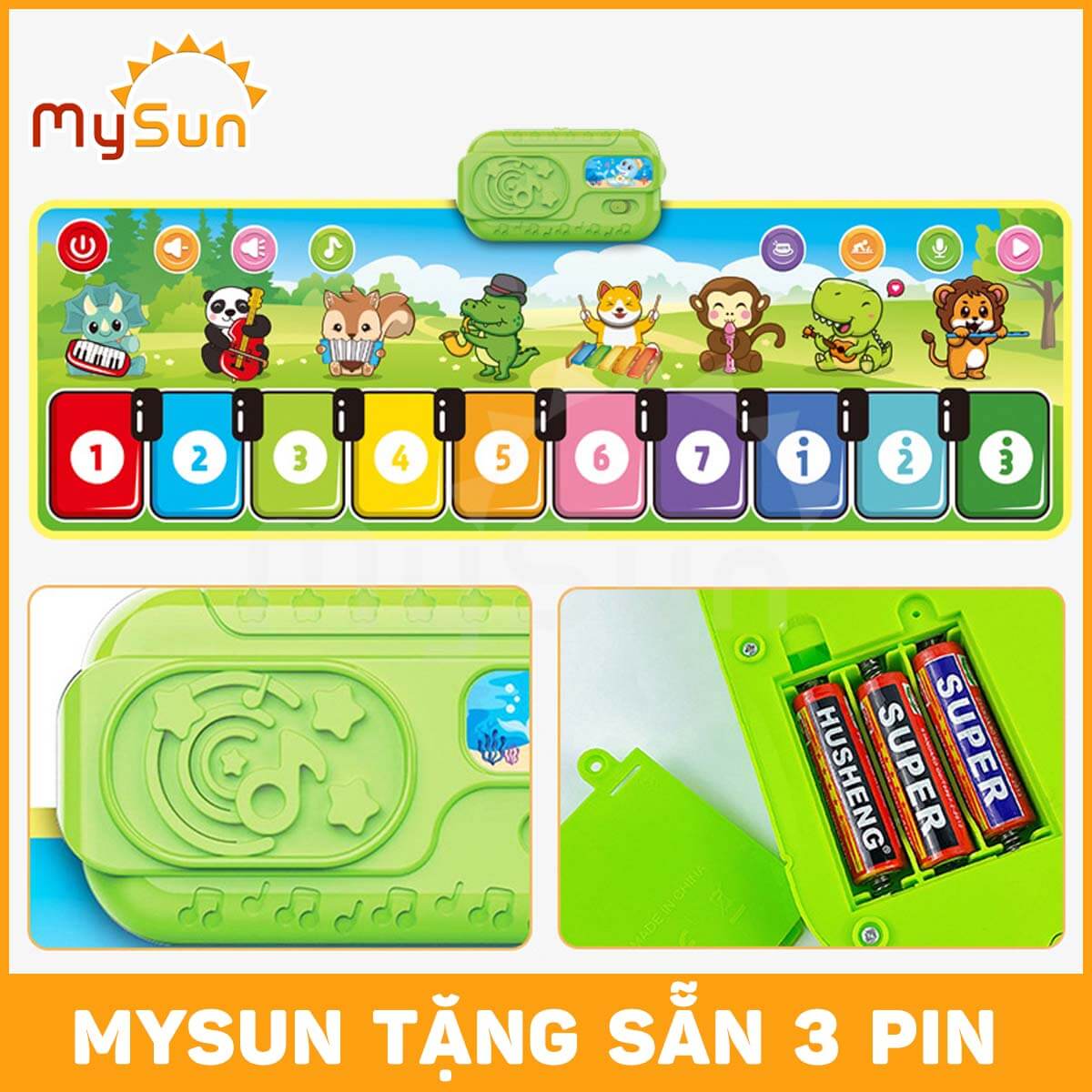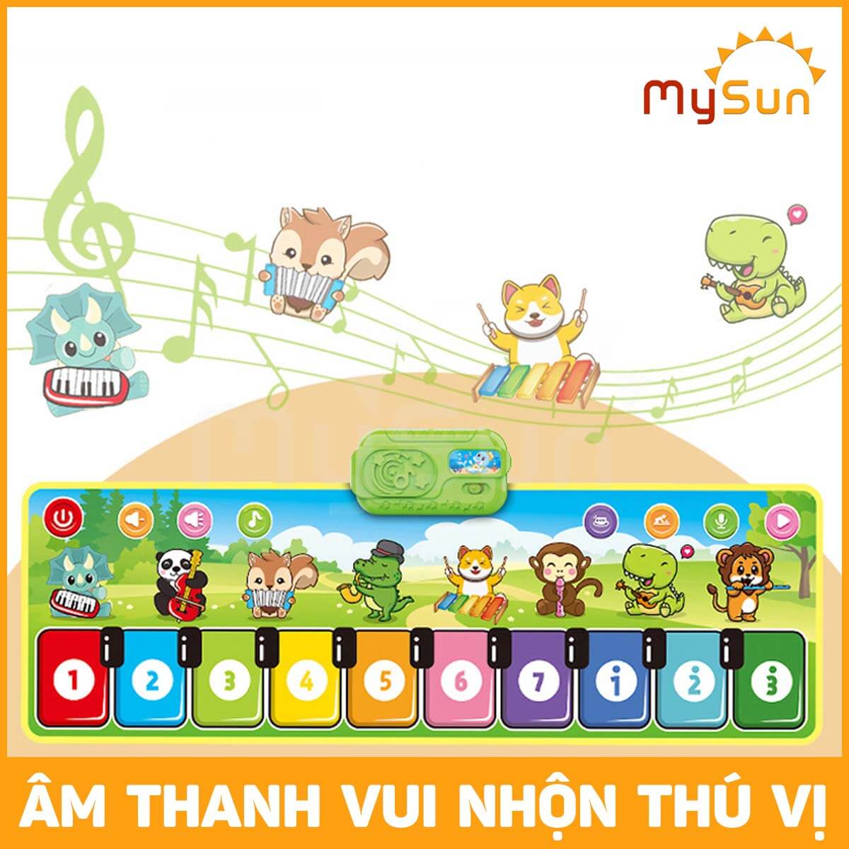 Mua tại TiktokÂm nhạc không đơn thuần chỉ là một hình thức nghệ thuật sử dụng âm thanh để tạo ra trải nghiệm cảm xúc. Mà nó như một chiếc chìa khóa vạn năng giúp con người mở ra nhiều điều mới mẻ, đặc biệt. Đặc biệt với trẻ nhỏ, âm nhạc sẽ giúp não bộ được kích thích và phát triển tốt nhất. Vậy làm sao để có thể nuôi dưỡng ước mơ âm nhạc cũng như giúp bé phát triển não bộ. Hiểu được tâm lý trên của khách hàng, MySun xin giới thiệu đến bạn đồ chơi thảm âm thanh có 8 nhạc cụ đàn Guitar, Piano, Violin, Xylophone, kèn Flute, Saxophone, Clarinet, Accordion cho bé. Hãy cùng chúng tôi tìm hiểu kỹ hơn những ưu điểm nổi bật của sản phẩm này nhé. GIỚI THIỆU ĐỒ CHƠI THẢM ÂM NHẠC CHO BÉ 1 2 3 4 5 6 TUỔI VẬN ĐỘNG GIẢI TRÍ MYSUN