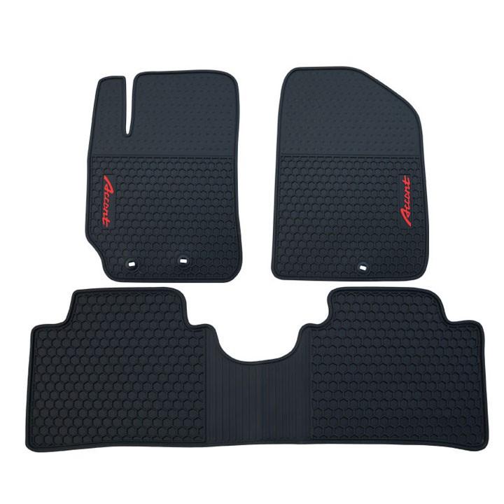 THÔNG TIN SẢN PHẨM Thảm lót sàn cao su đúc cho xe ô tô Hyundai Accent Bộ Thảm Lót Sàn được đúc bằng khuôn CNC cho riêng từng model xe nên lắp đặt chính xác như hàng zin theo xe, sản phẩm được làm từ cao su tổng hợp nên rất bền và đặc biệt là không có mùi như các loại thảm khác trên thị trường, đem lại sự sạch sẽ và sang trọng cho chiếc xe của bạn. Chất liệu cao su bền bỉ với thời gian, vệ sinh đơn giản chống thấm nước. Nềm mặt hoa văn dạng lưới nổi chống trơn trượt cực tốt. In nổi logo Accent màu đỏ nổi bật. Thảm dày 0.8CM. Bộ Sản phẩm gồm 3 mảnh: 2 thảm ghế trước và 1 thảm ghế sau, sử dụng lắp đặt áp dụng cho xe Hyundai Accent