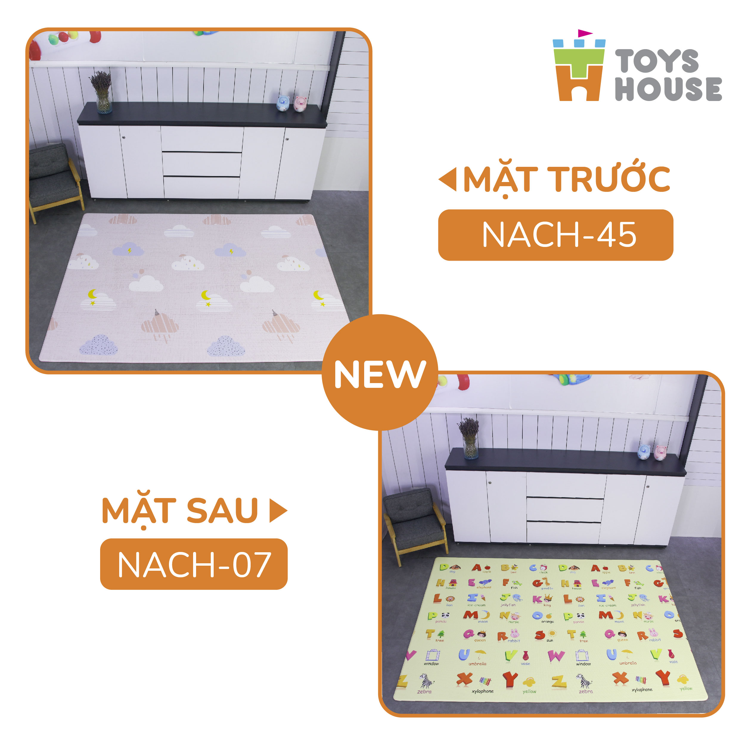 - Toys House sử dụng công nghệ NANO kháng khuẩn cho thảm, ba mẹ có thể yên tâm để bé thỏa thích vui chơi hay tập bò lăn lộn.