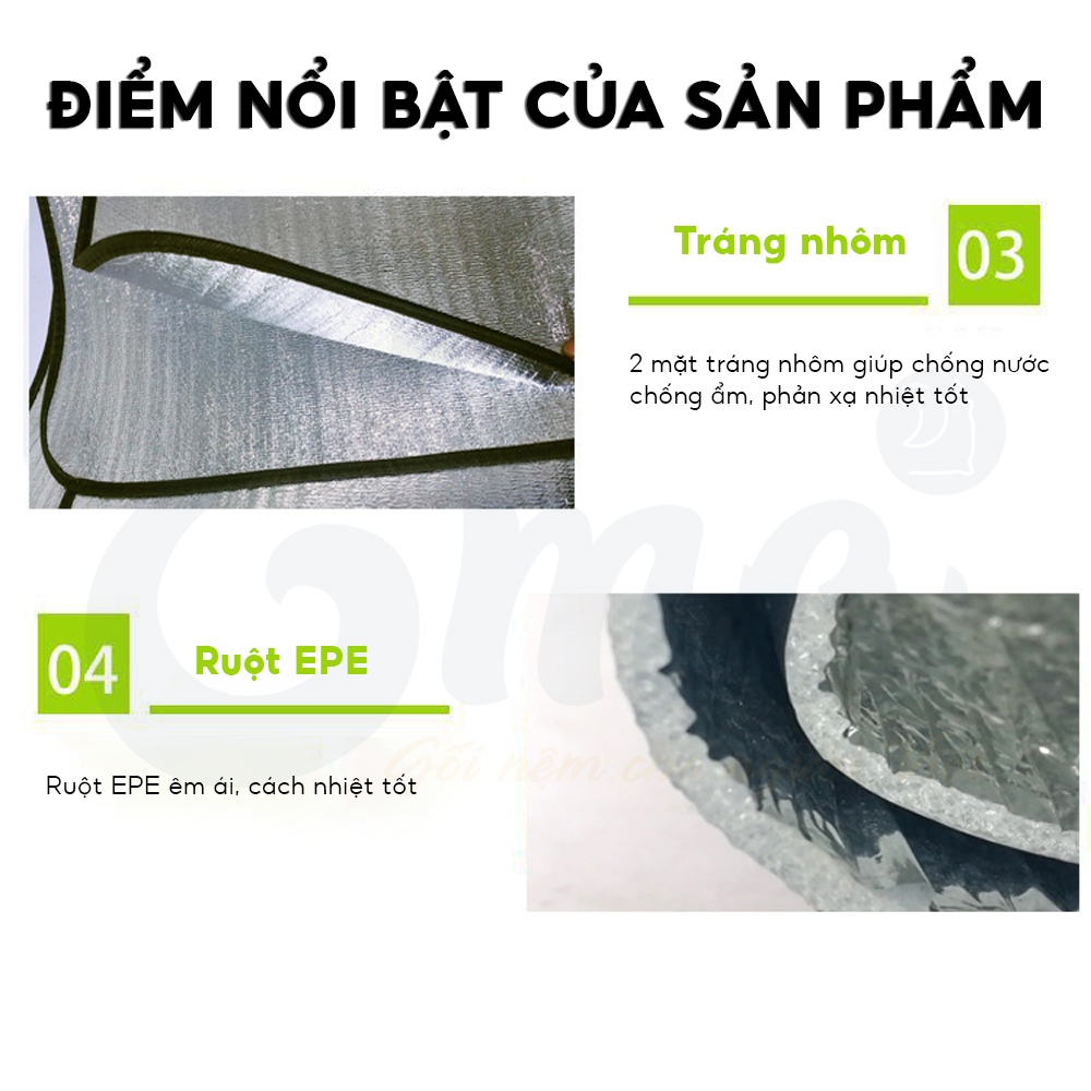 ĐẶC ĐIỂM NỔI BẬT - Bề mặt tráng nhôm cách nhiệt tốt cho sức khỏe của người sử dụng, ruột EPE cách nhiệt tốt, nằm không lạnh lưng - Không thấm nước, dễ lau sạch