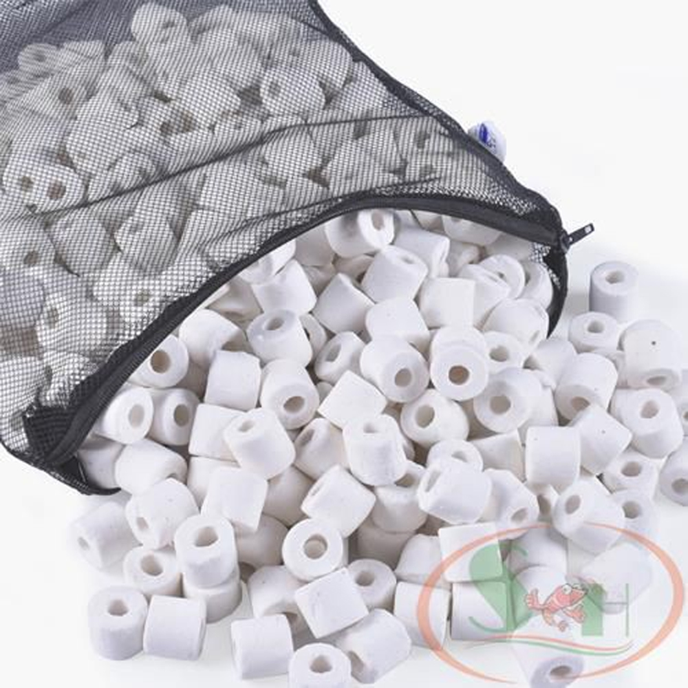 Sứ Lọc Hồ Cá túi 1KG và 1 túi đựng vật liệu lọc bể cá SIZE TO 37 x 29cm Vật liệu lọc cho hồ cá, có độ xốp rỗng cao, là chỗ cho vi