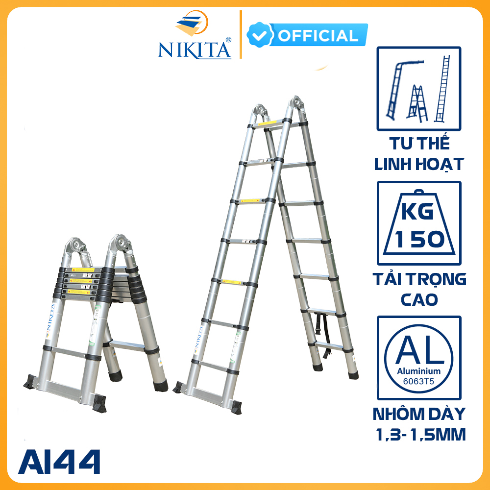 Thang nhôm rút NIKITA: thường được làm bằng chất liệu nhôm cao cấp, có độ bền cao, chống chịu được các tác động của môi trường như mưa, nắng, gió,...