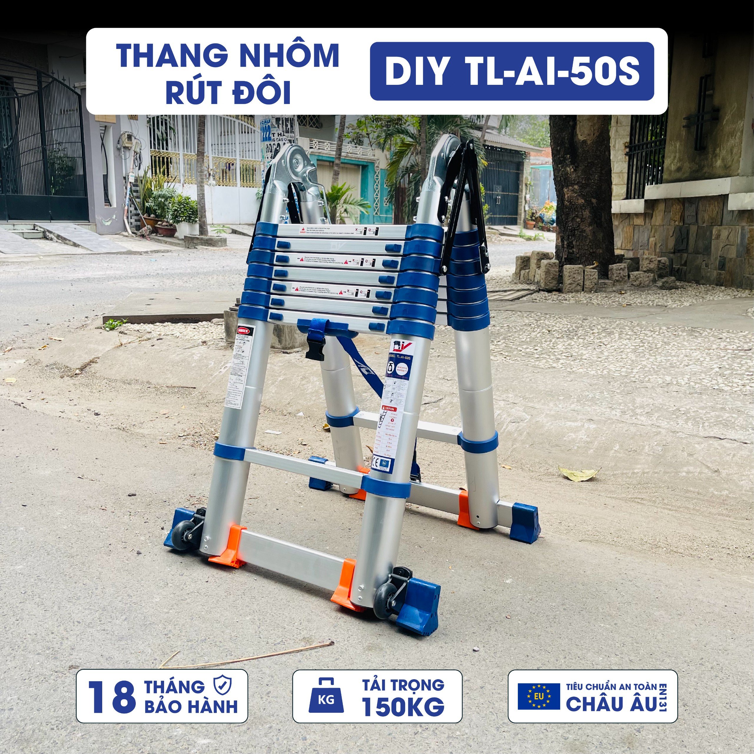 ✨Thang nhôm rút đôi DIY TL-AI-50S chiều cao sử dụng tối đa chữ A 2.4m chữ I 5m - Tiêu chuẩn chất lượng an toàn Châu Âu