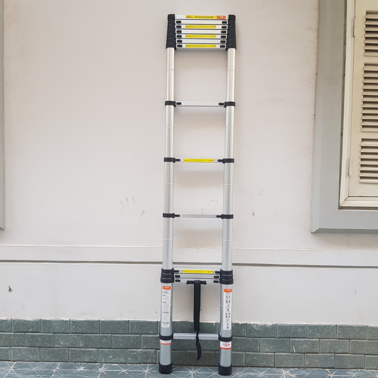 Thang nhôm rút đơn Ashi 4,8m đai xanh là sản phẩm thang rút bán chạy nhất thị trường - Thang hữu dụng cho việc thao tác trong nhà và cả ngoài trời như lấy các