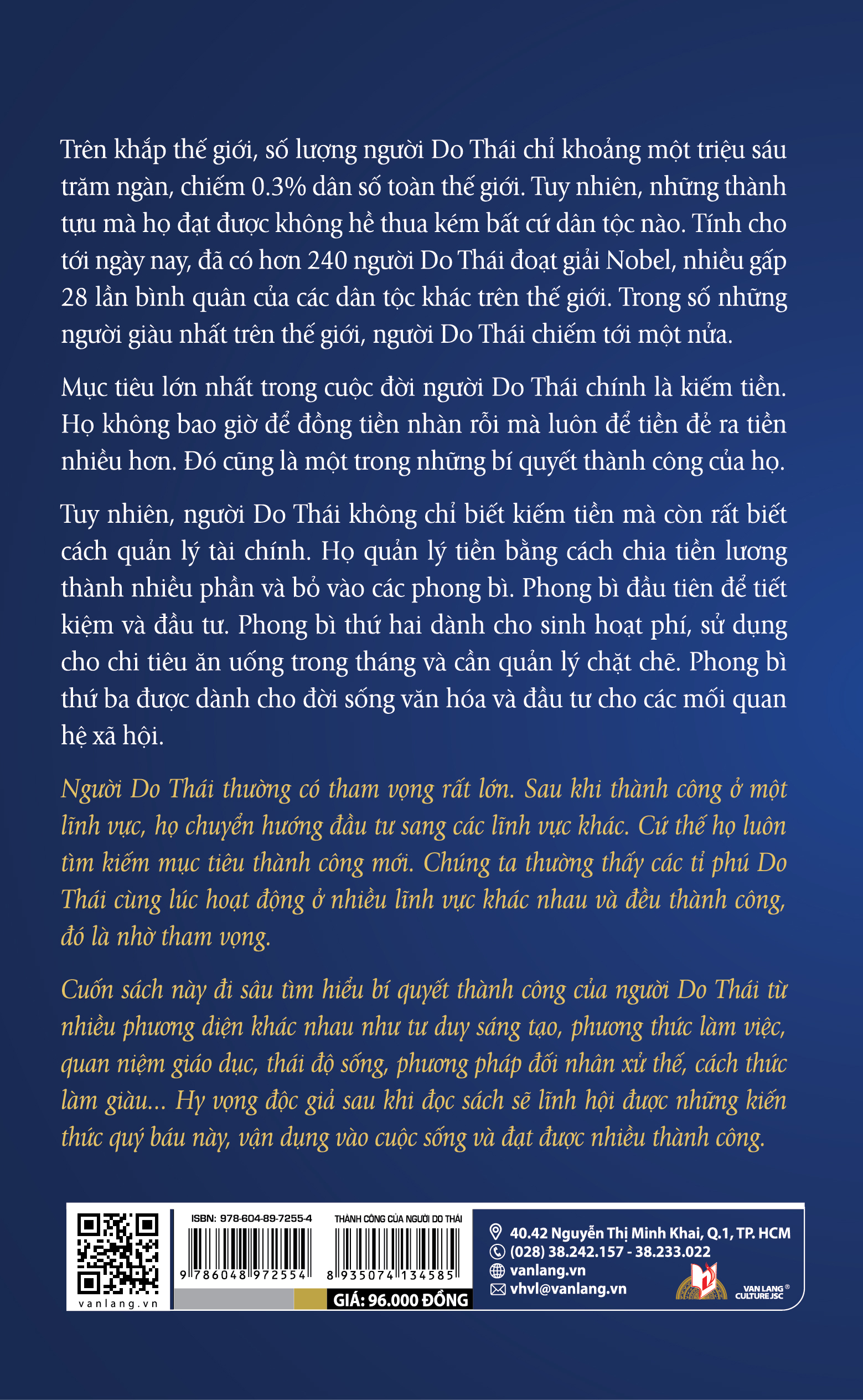 Cuốn sách này đi sâu tìm hiểu bí quyết thành công của người Do Thái từ nhiều phương diện khác nhau như tư duy sáng tạo, phương thức làm việc, quan niệm giáo dục, thái độ sống, phương pháp đối nhân xử thế, cách thức làm già Hy vọng độc giả sau khi đọc sách sẽ lĩnh hội được những kiến thức quý báu này, vận dụng vào cuộc sống và đạt được nhiều thành công."