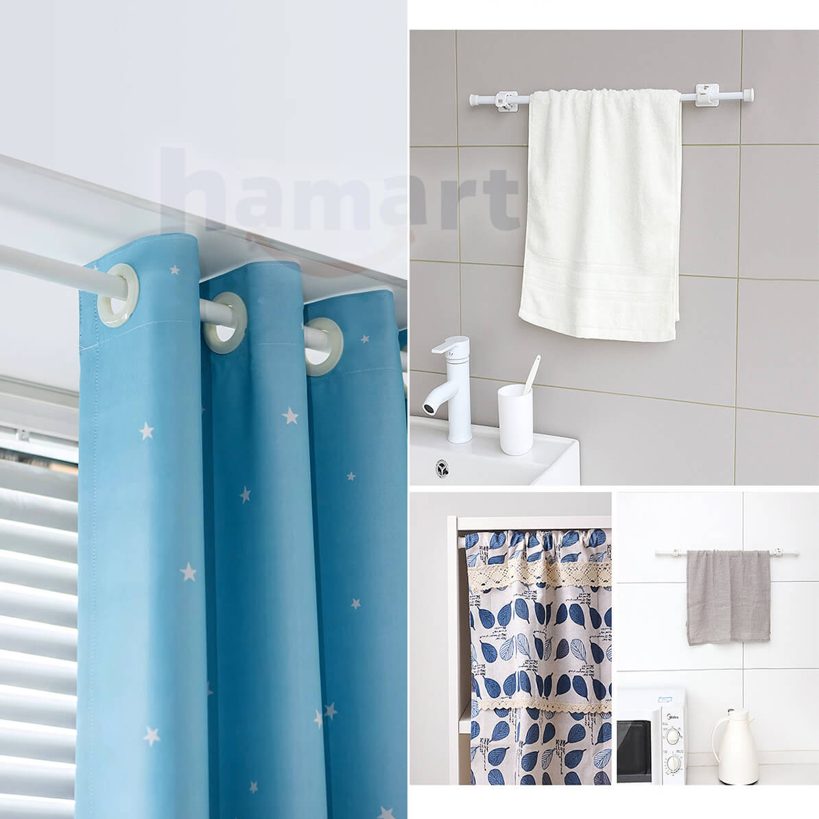 ✨Thanh Treo Rèm Dán Tường Treo Đồ Đa Năng Hamart Kim Loại Gắn Tủ Quần Áo Cửa Sổ Ngang 1.3CM