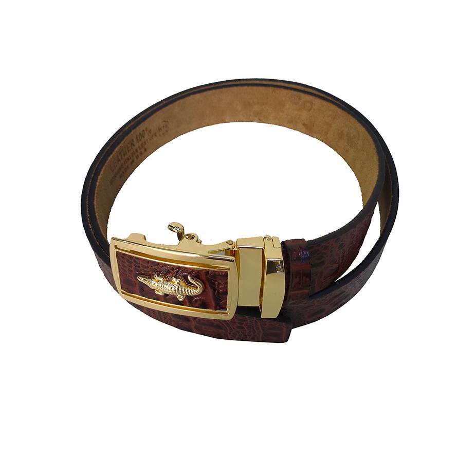 Thắt lưng nam da thật mặt khóa tự động bằng thép sáng bóng không gỉ