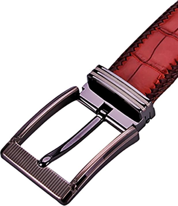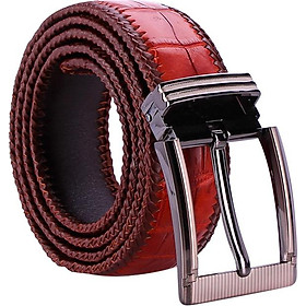 ✨Thắt Lưng Nam Da Cá Sấu Đan Viền Bản Lớn Đầu Kim Huy Hoàng HT4296 - Nâu Đỏ