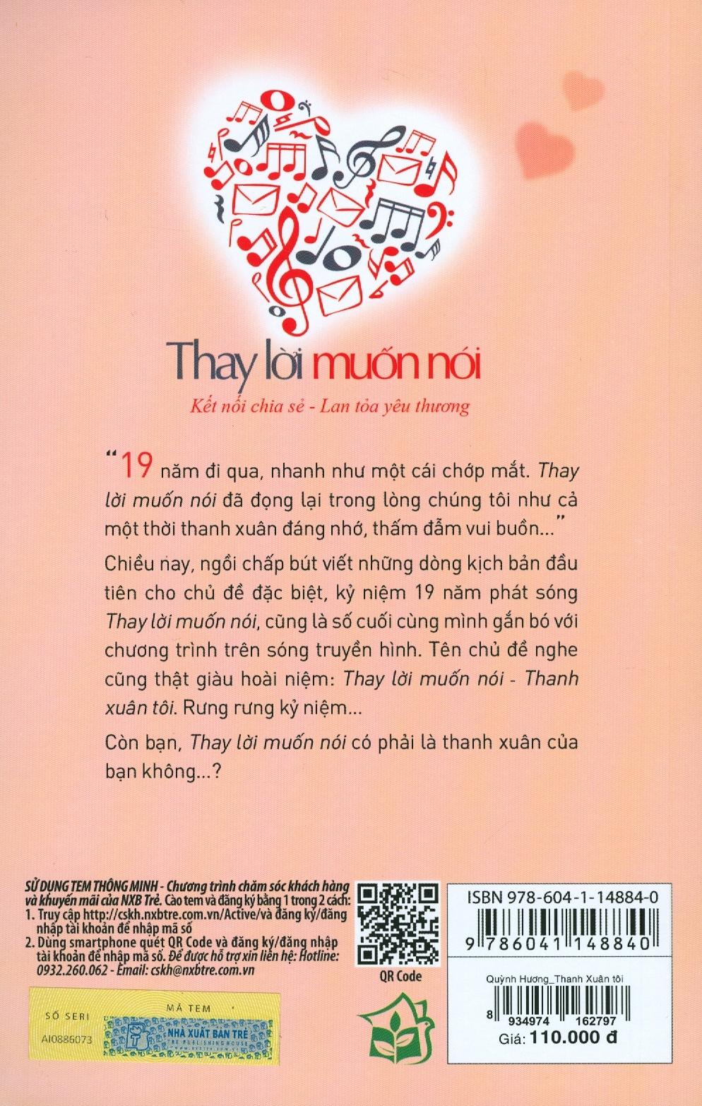 Bạn thân mến, một khi đã cẩm quyển sách này trên tay, cho dù bạn đã đọc qua một số bài viết trong đây hay chưa, hãy cảm nhận chúng với những cảm xúc mới mẻ, riêng biệt. Bởi ở đây, chúng không chỉ đơn thuần là những trang viết của Quỳnh Hương mà bạn quen biết. Chúng còn là những ghi chép của một thời thanh xuân của Thay lời muốn nói một chặng đường, trong đó có thanh xuân của Quỳnh Hương, của cả chính bạn, và nhiều bạn bè khác…