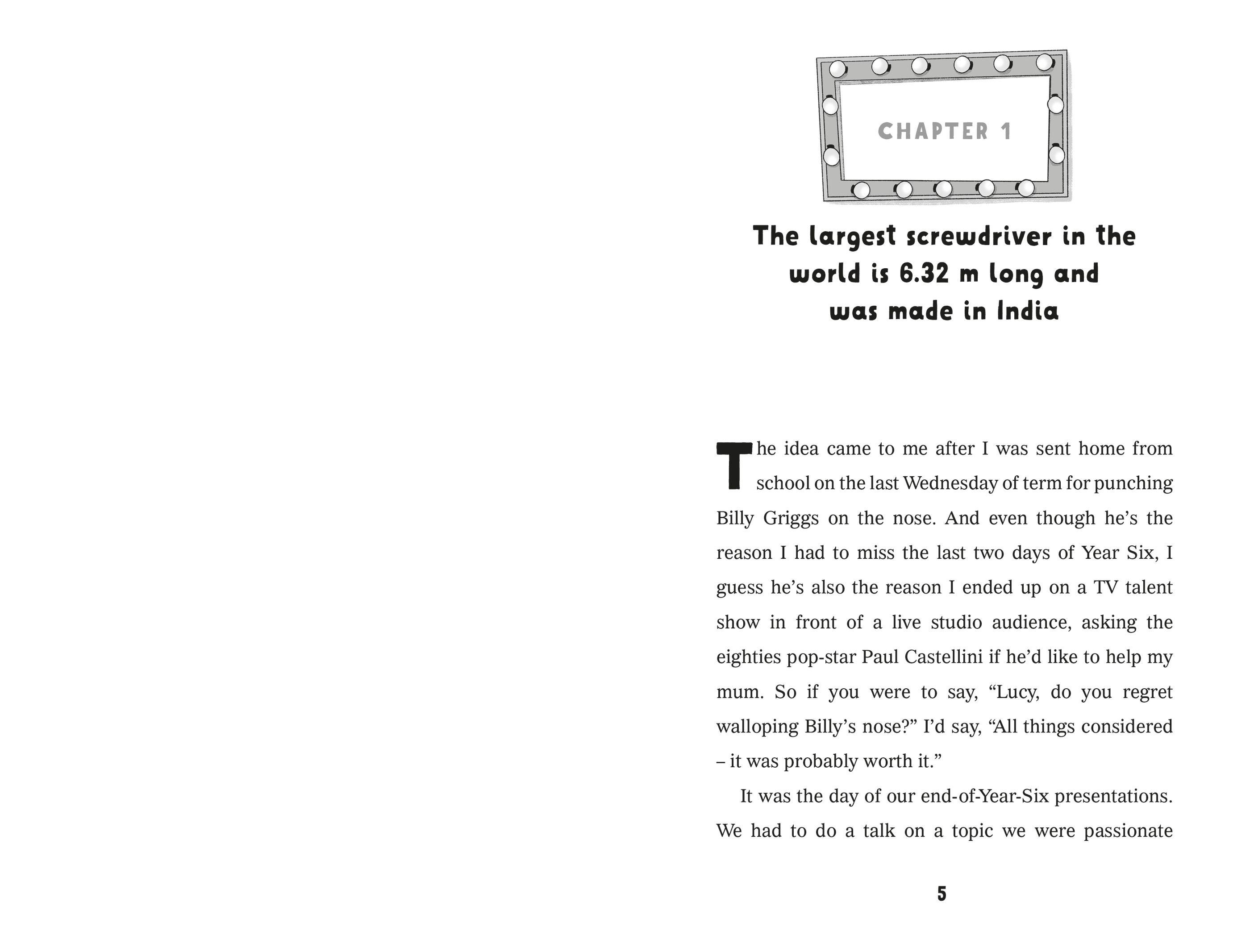Because she's convinced that starry Paul Castellini - Record Smashers TV host and singing legend - is the answer to her mum's problems. But breaking a world RECORD when watermelons, kumquats, two baddies and a 30 cm shatter-resistant school ruler are involved isn't quite as easy as Lucy thought. Can she learn that sometimes happiness doesn't come with a plan?