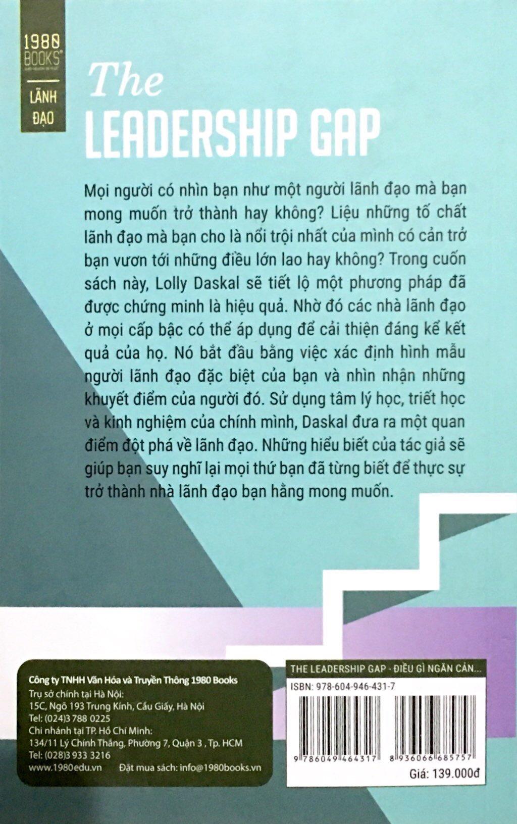 Trong cuốn sách The Leadership Gap - Điều Gì Ngăn Cản Bạn Trở Nên Vĩ Đại, Daskal giải thích tường tận cho độc giả vì sao mỗi nhà lãnh đạo đều tiềm ẩn những tố chất để trở nên vĩ đại. Mô hình lãnh đạo cô cung cấp có thể được áp dụng cho các nhà lãnh đạo ở mọi cấp bậc để cải thiện đáng kể kết quả hoạt động Nó bắt đầu bằng việc xác định hình mẫu người lãnh đạo lý tưởng của bạn và nhìn nhận những khuyết điểm của người đó. Đọc tác phẩm này, bạn sẽ có được cái nhìn hoàn toàn mới mẻ về những điều cần làm, cần suy nghĩ để thực sự trở thành nhà lãnh đạo bạn hằng mong muốn.