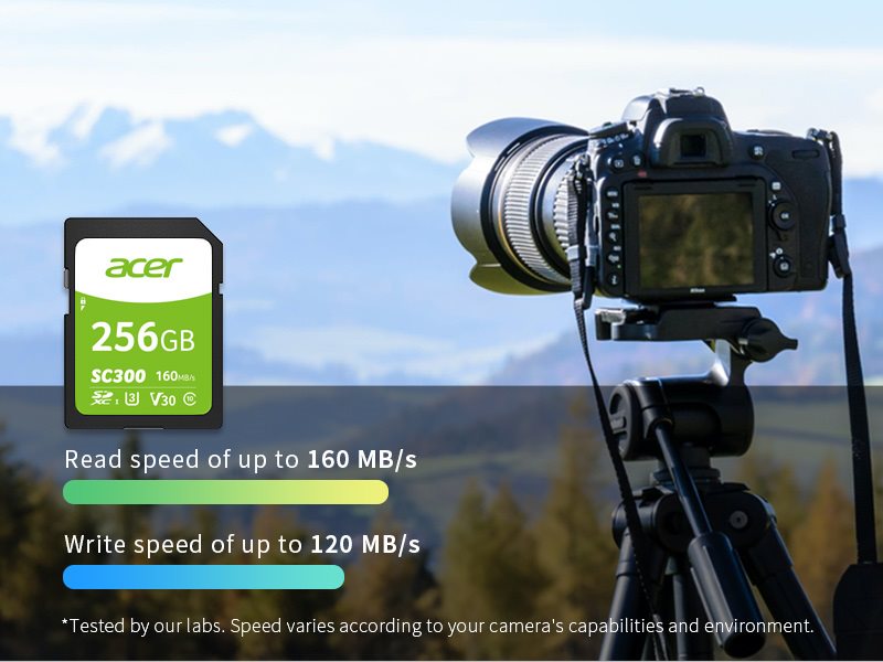 THIẾT KẾ CHO CHUYÊN GIA VỚI HIỆU SUẤT TỐC ĐỘ CAO Thẻ nhớ SD Acer SC300 cho tốc độ chụp ảnh lên đến 120 MB/s và tốc độ truyền tải lên đến 160 MB /