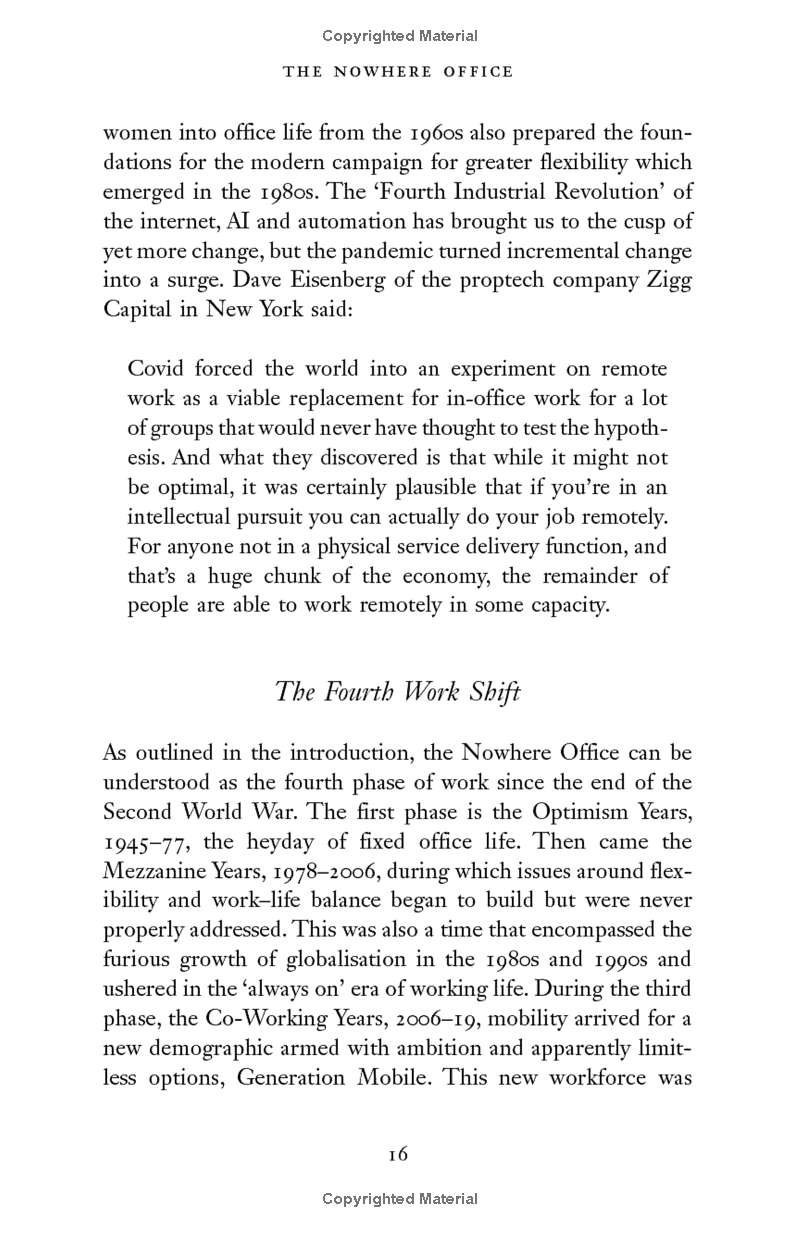The Nowhere Office: Reinventing Work And The Workplace Of The Future What has changed in the workplace? Everything. The traditional office was probably doomed anyway. Then a global shutdo...