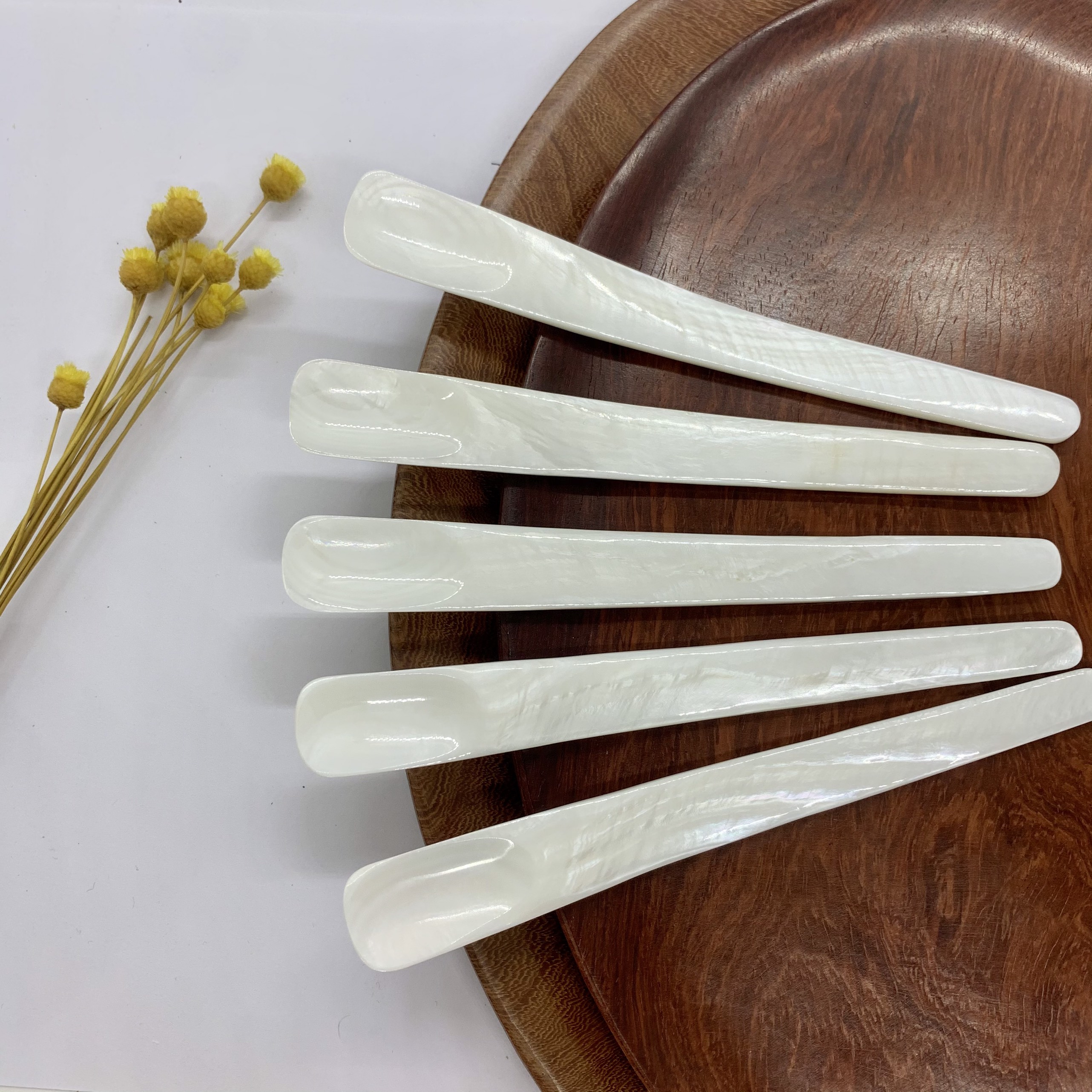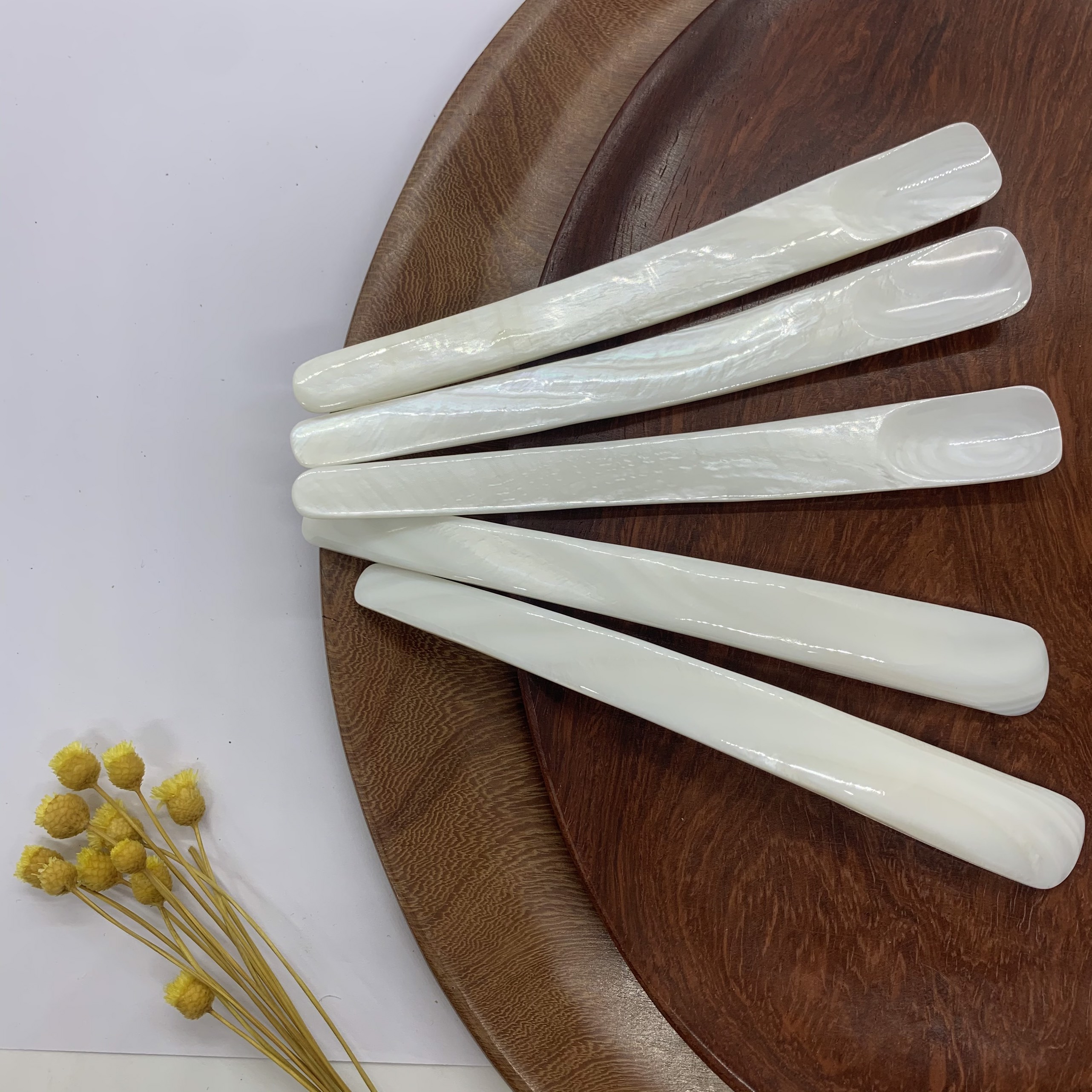 Phụ kiện thìa vỏ xà cừ vừa sử dụng chụp ảnh hoặc decor trang trí cho nhà hàng, món ăn.