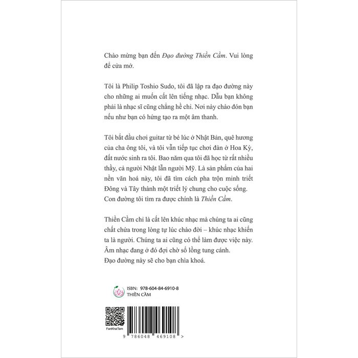 Thiền Cầm chỉ là cất lên khúc nhạc mà chúng ta ai cũng chất chứa trong lòng tự lúc chào đời – khúc nhạc khiến ta là người. Chúng ta ai cũng có thể làm được việc này. Âm nhạc đang ở đó đợi chờ sổ lồng tung cánh. Đạo đường này sẽ cho bạn chìa khoá.