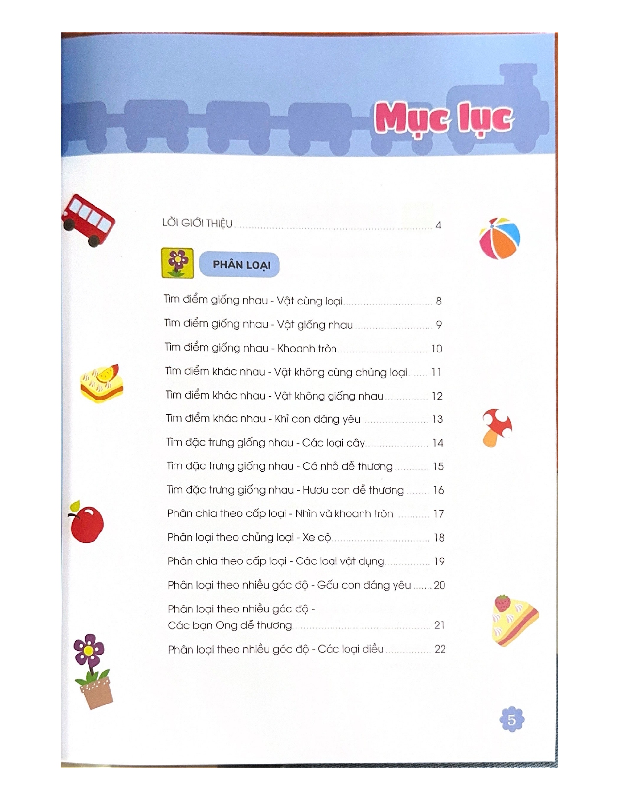 Bộ sách giúp trẻ biết so sánh, phân loại đồ vật, nhận biết các dạng hình học, không gian, thời gian, các con số và phép tính. Trẻ sẽ được gợi mở tiềm năng trí