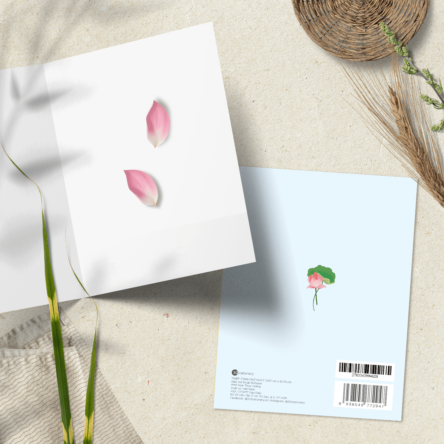Kích thước thiệp: 13,97 x 10,79 cm (gập), 13,97 x 21,59 cm (mở)