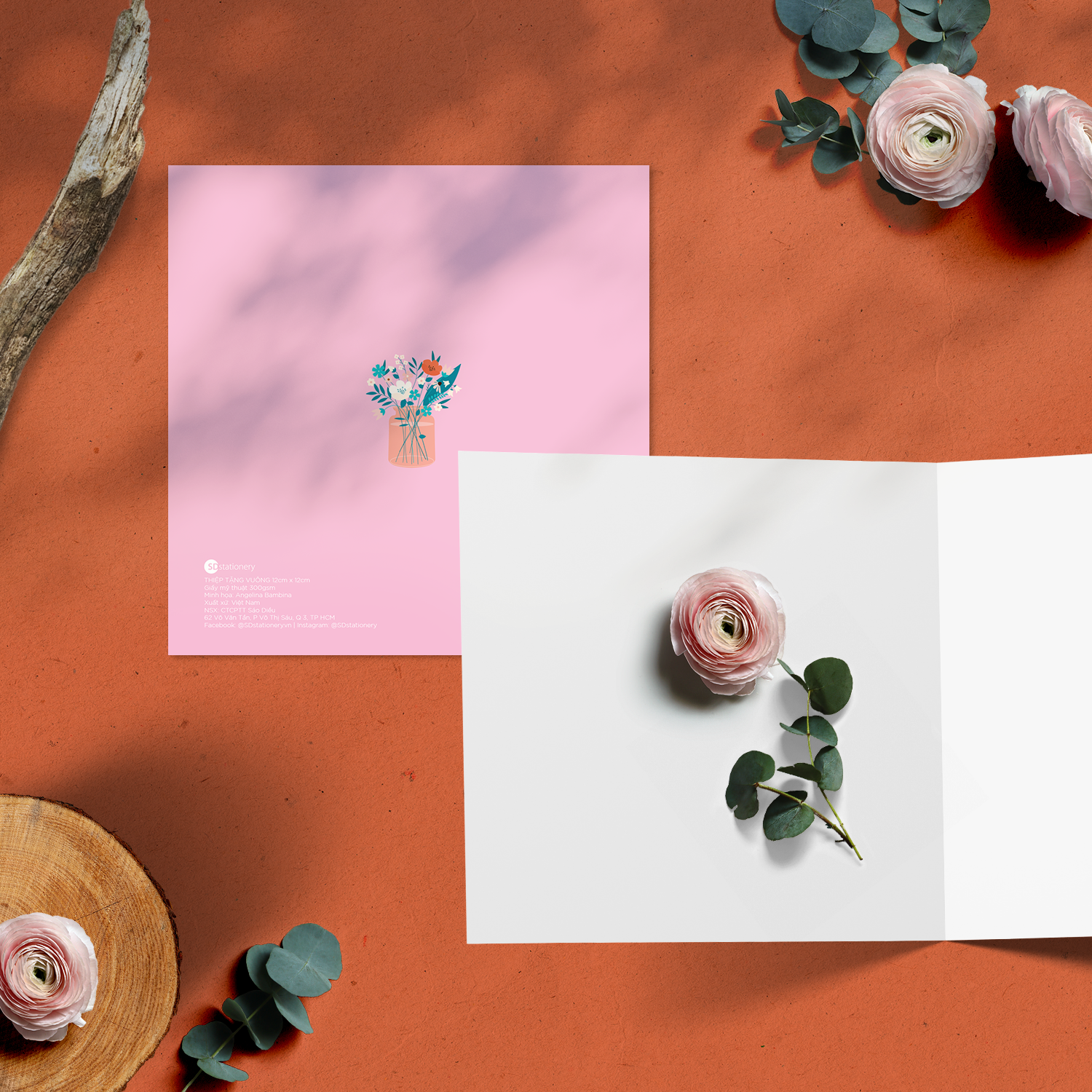 Kích thước thiệp: 12x12cm (gập), 24x12cm (mở)