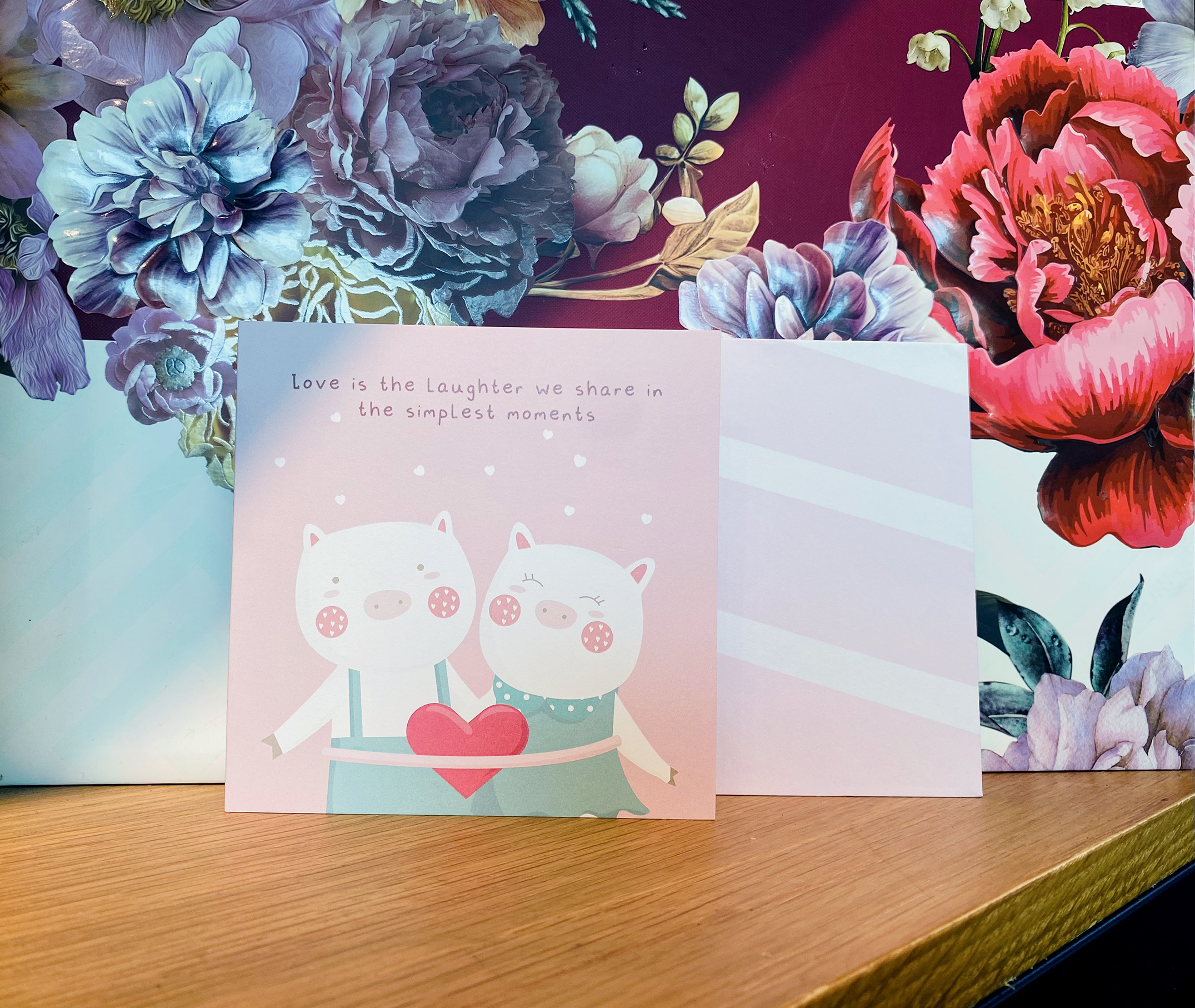 ✨Thiệp tình yêu, Valentine, tỏ tình, SDstationery Simplest Moments, hình đôi heo dễ thương, màu hồng, vuông 12x12 cm