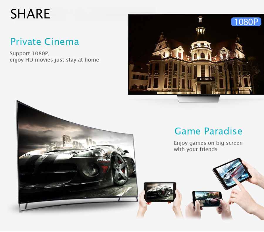 - Thiết kế nhỏ gọn và dễ dàng sử dụng với các ứng dụng truyên hình ảnh như D.L.N.A, Airplay, Miracast, Airplay
